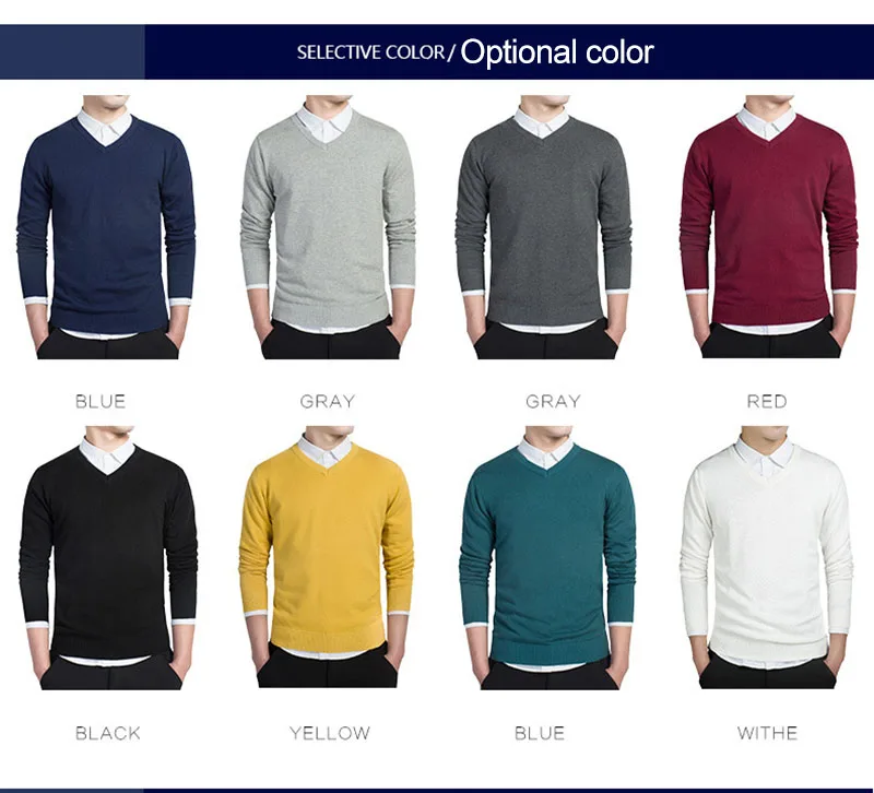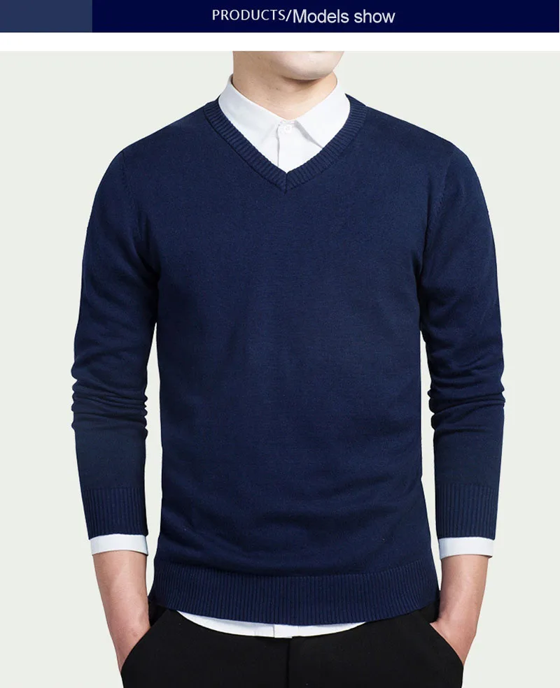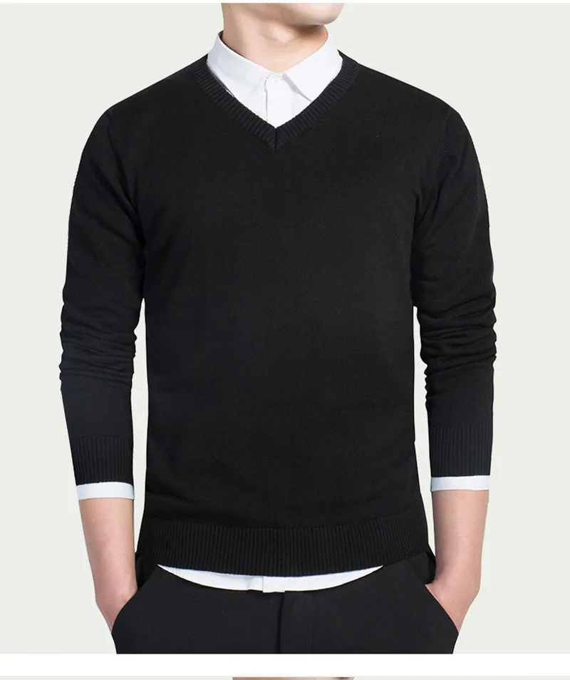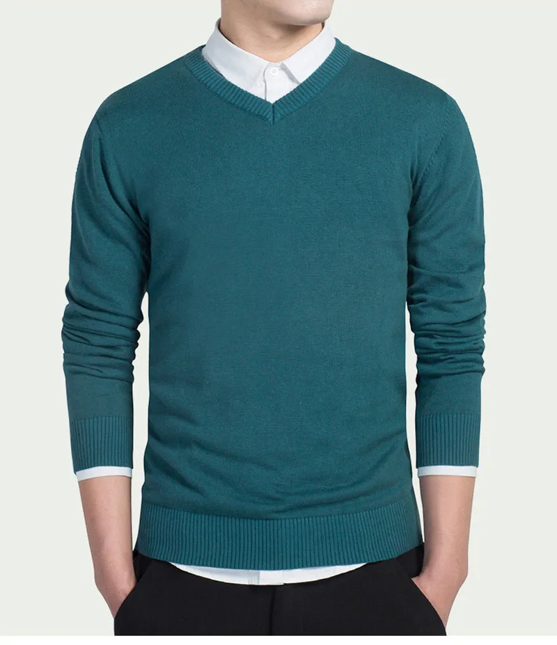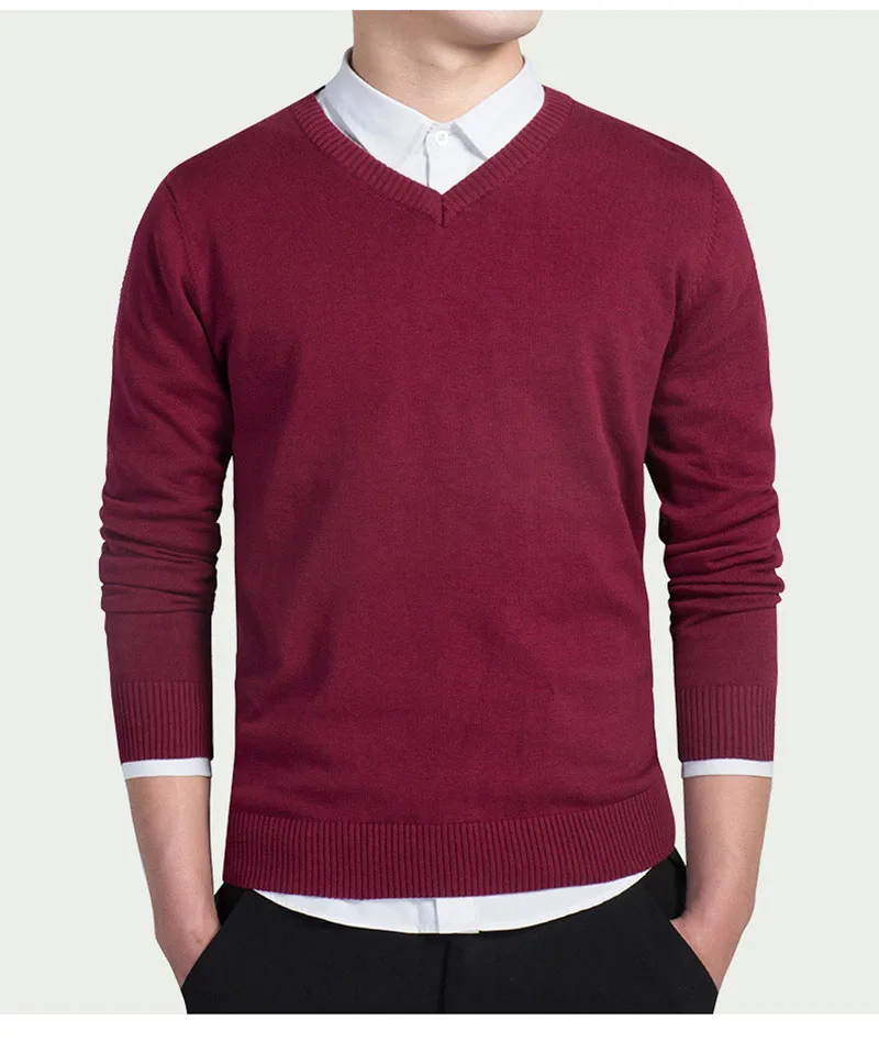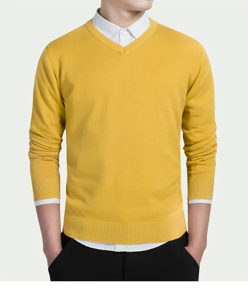Повседневные трикотажные свитера с V-образным вырезом, модель 2021 года, мужской осенний Модный пуловер, облегающий хлопковый Однотонный мужской свитер с длинным рукавом, яркий цвет