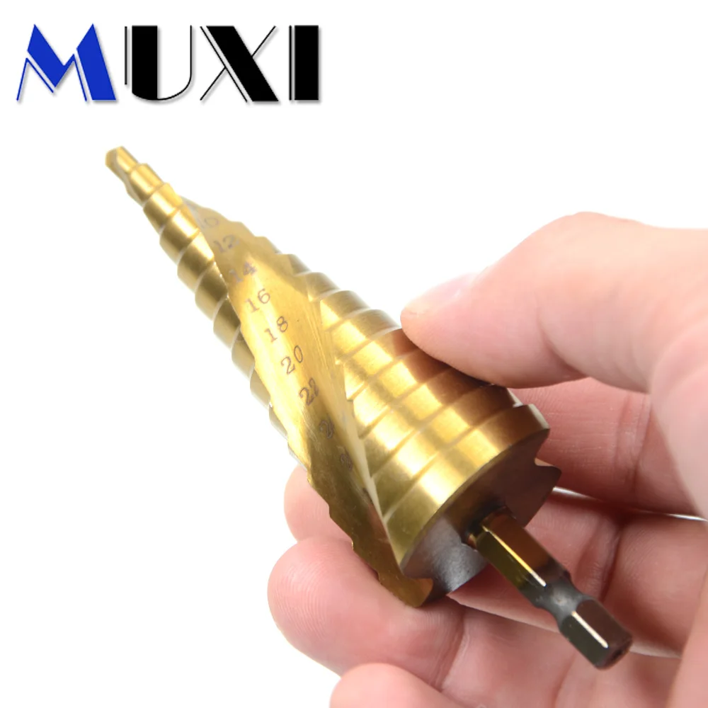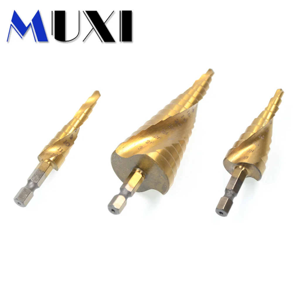 3 шт. спиральные ступенчатые сверла, 4-12/4-20/4-32 мм 29 размеров, основной материал Высокоскоростная сталь, титановое покрытие высокое качество ступенчатые сверла.