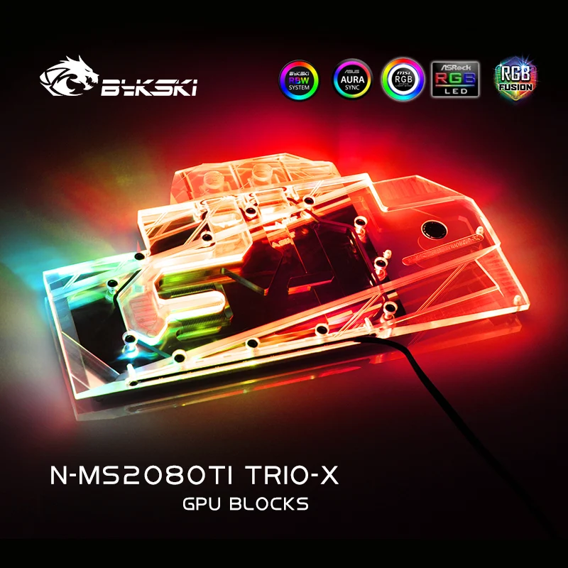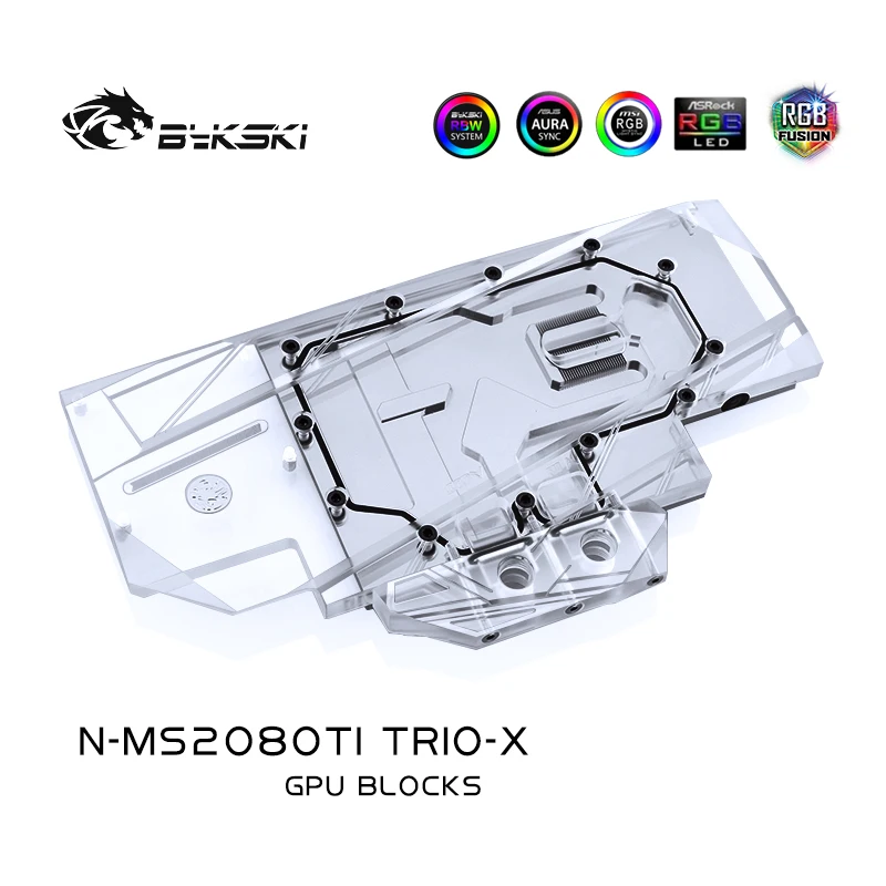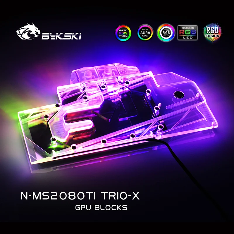 Водяной блок Bykski для MSI RTX2080TI GAMING X TRIO (V371-026R) полное покрытие, медный цвет3PIN 5V RGB 4PIN 12V RGB
