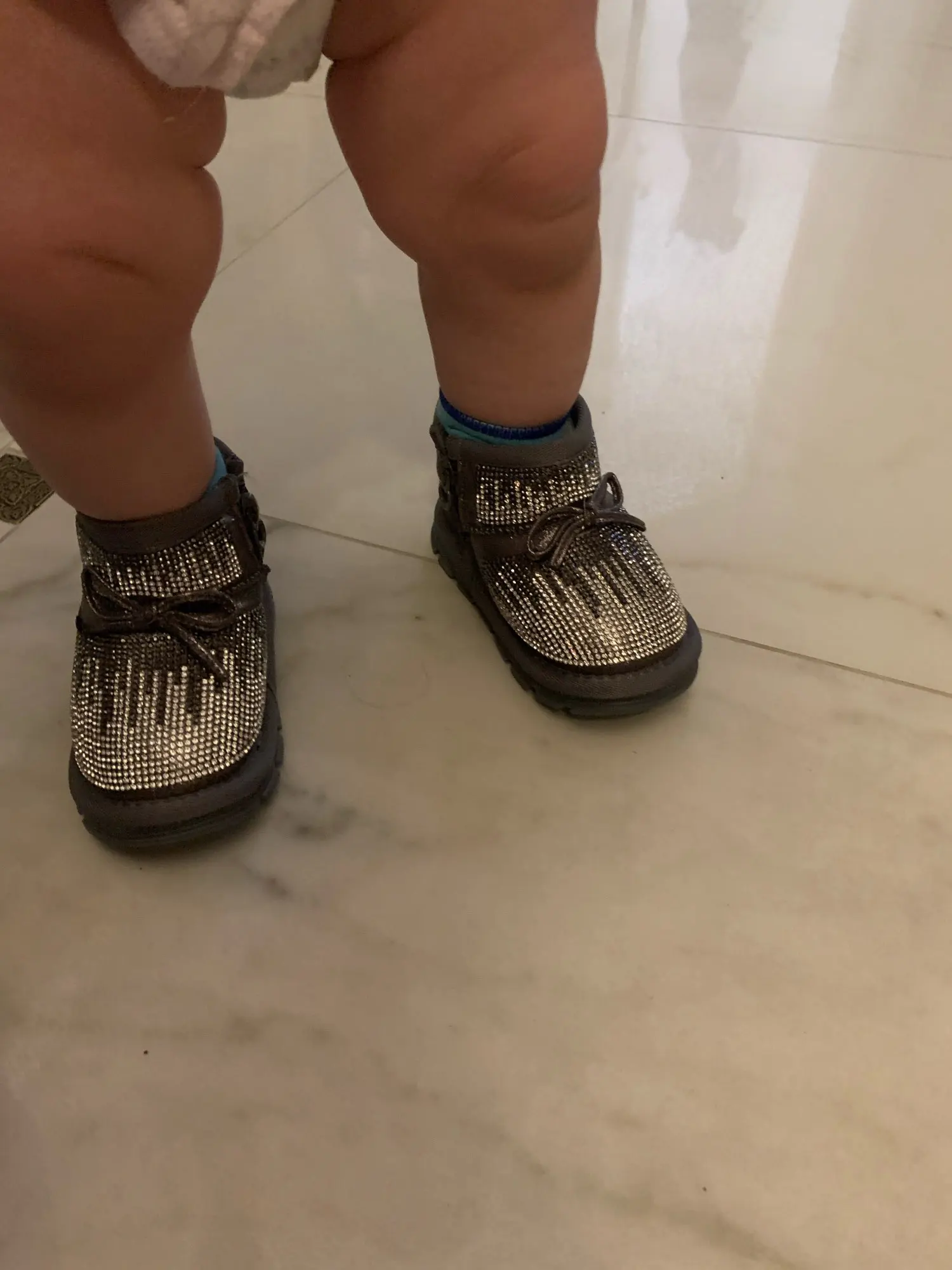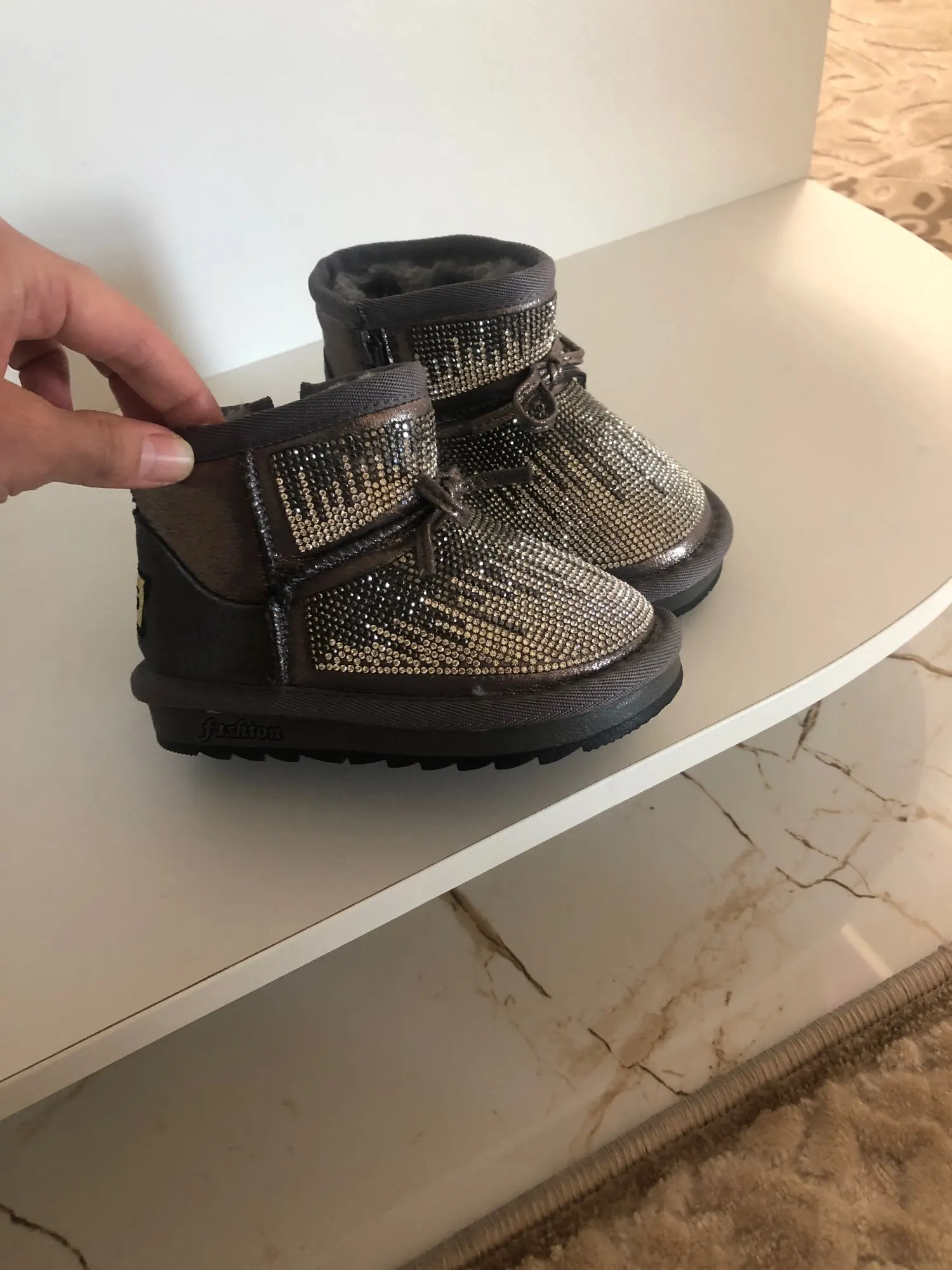 Просто космос,в живую еще лучше,чем на фото,качество норм,пару ниток внутри не критично,нам носить их всего 1-2 мес,если ребенок не ходит-возможно ножки будут мерзнуть- при минусе... европейская зима... но очень крутые и цена супер, 2,5 недели вРостовская область
