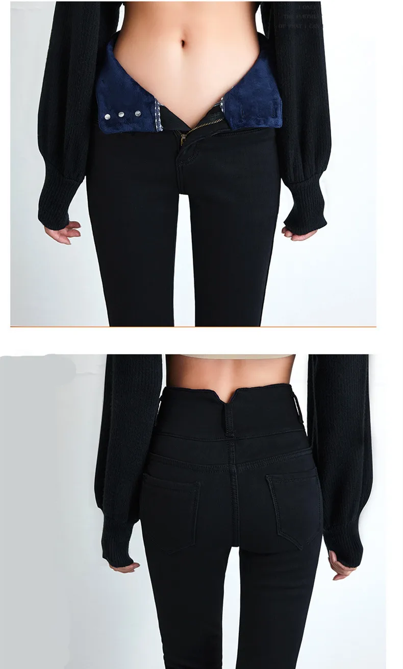 Женские вельветовые плотные джинсы с высокой талией, зимние обтягивающие Стрейчевые теплые джинсы, черные джинсовые брюки с ворсом, 2019