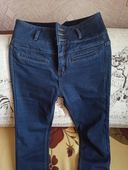 Отличные тёплые джинсы! 25 размер на бедра 88 см и талию 65 хорошо сел. Тянутся. Утеплены до верха. На рост 156 см лишние где-то сантиметра 3 по длине в этом размере. В общем, всё, как на фото