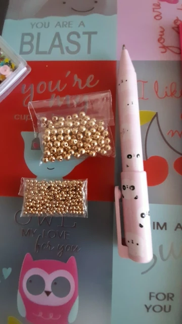 Товар соответствует фото и описанию, пришел быстро. Брала бусины 3 мм, очень классные. В работе пока не использовала, надеюсь не облезут