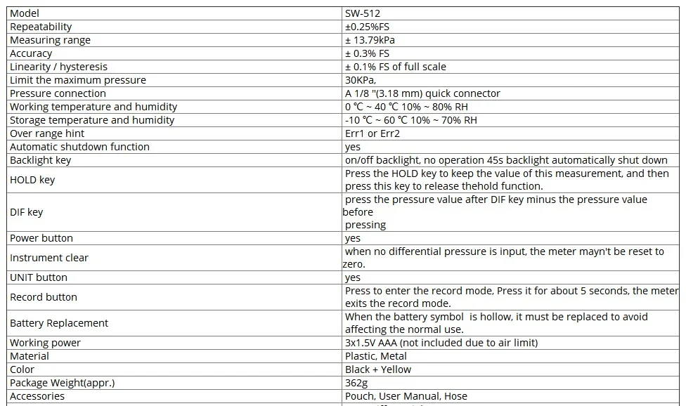 ОсобенностиПрибор может измерять дифференциальное давление/положительное давление/отрицательное давление со следующими дополнительными измерениями: единицы измерения: кПа, мм рт. Ст., inHg, psi, mbar, bar, ozin, kgcm, inH O, ftH O, cmH O с простым соединением шланга для измерения системы вентиляции и кондиционирования воздуха и проверки на местах, Или любой сбой системы давления газа при капитальном ремонте, прост в эксплуатации и четкие показания для техников HVAC. Инженеры по эксплуатации и обслуживанию и научные исследователи, незаменимые измерительные инструменты.1. Большой ЖК2. Хранение данных3. С дифференциальным режимом и режимом записи4. Индикация низкого заряда батареи и автоматическое отключение питания