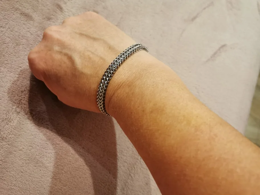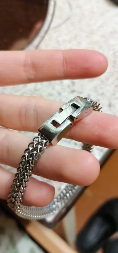 Заказываю браслет уже второй раз. Первый раз заказывала ещё в марте в подарок. Тогда доставка была почти 2 месяца до Новосибирска. Но это не испортило мои впечатления, браслет офигенный! Качественный металл, не особо тяжёлый, застёжка крепкая, даже тугая я бы сказала. Получатель подарка был в восторге от такого, на первый взгляд, обычного браслета. Спустя пол года с браслетом все ок, ничего не случилось, хотя человек носит его не снимая. Второй раз заказала в ноябре уже для себя, неожидала, что придет так быстро, всего 19 дней и это чудо у меня. Отличная идея для подарка для любимого, ни капли не уступает дорогим моделям. Советую!!! Закажу на подарки ещё несколько раз, спасибо!!