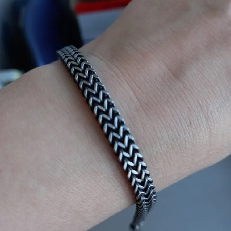 браслеты мужские Стильная цепочка плетения лисий хвост из нержавеющей стали Silverly, для мужчин, цепь двойное плетение, браслеты, мужские ювелирные изделия 8,26 дюйма браслет мужской
