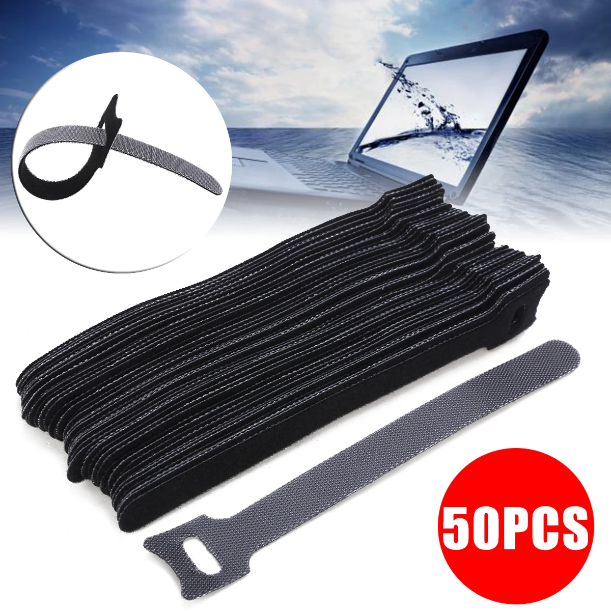 50 шт.лот, Черный Нейлоновый Кабельный Шнур, Завязывающийся на липучке, наматыватель клейкой ленты, опрятный органайзер, защита шнура