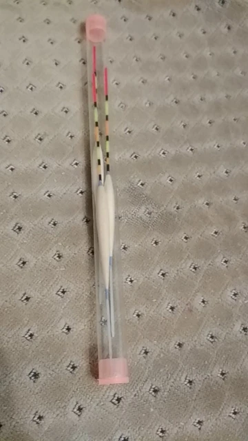 Поплавки пришли в пластиковых тубусах. Причем, 2 штуки запихнули в 1 тубус. При этом поплавок №2 оказался помят и поцарапан. Прийдется покрыть лаком. №1: длина 180мм. киль - 4 см, ф=1,6мм. антенна 8 см, ф=1мм, вершинка 2,5 мм. Диаметр тела 7,5 мм. №2 длина 18,5 см, диаметр тела 8мм, остальное, как у №1. №3 длина 190мм, диаметр тела 8,3 мм, остальное, как у №1. Изменен только размер тела. Поплавки очень легкие. Огрузка (не проверял) похоже, меньше 1 грамма.