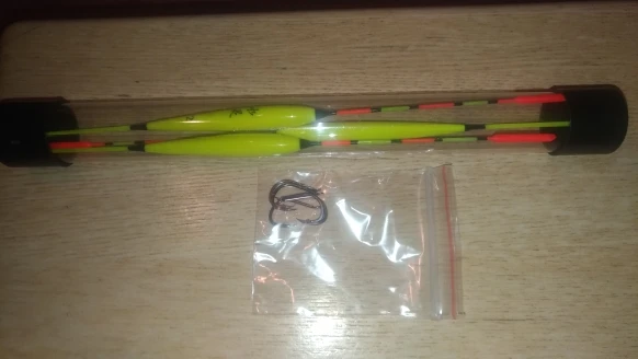 Упаковано в пластиковом тубусе. Бонусом - 4 крючка. Поплавки, по мне, очень легкие, для баклешки и карасиков мелких сгодятся!