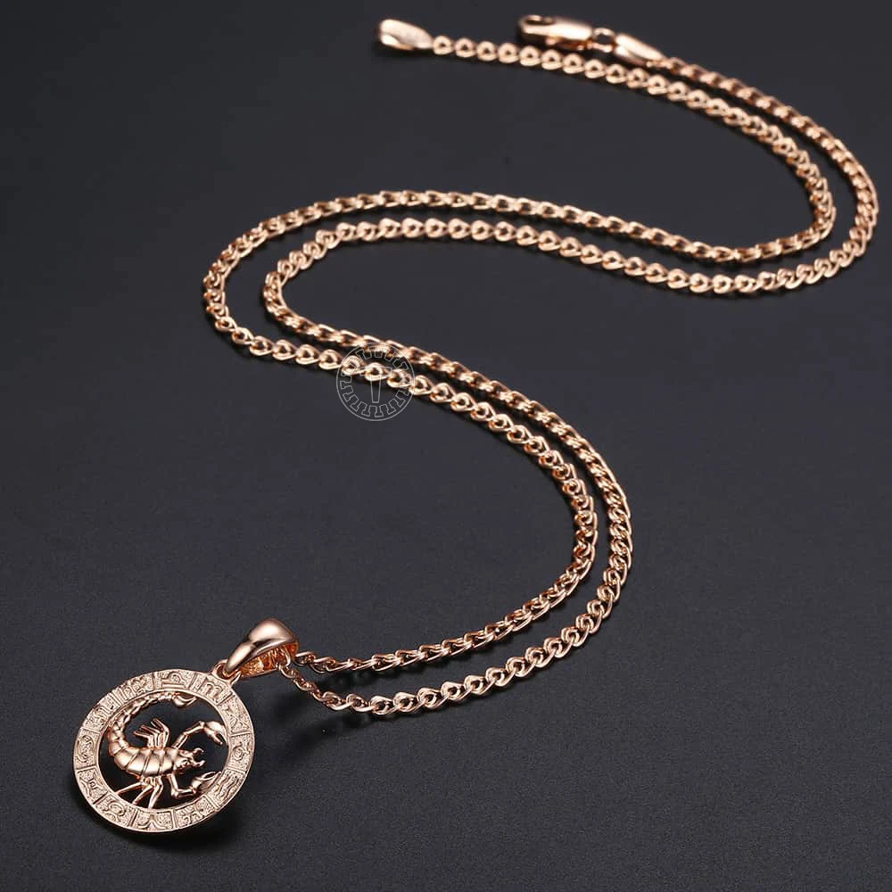 Женское и мужское ожерелье с знаком зодиака скорпиона 585 пробы, ожерелье с подвеской из розового золота, модные ювелирные изделия, подарки, опт, GP278D