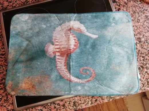 Коврик милый, но маленький, я рекомендую на размер больше. Он мягкий. Прибыл через два месяца.