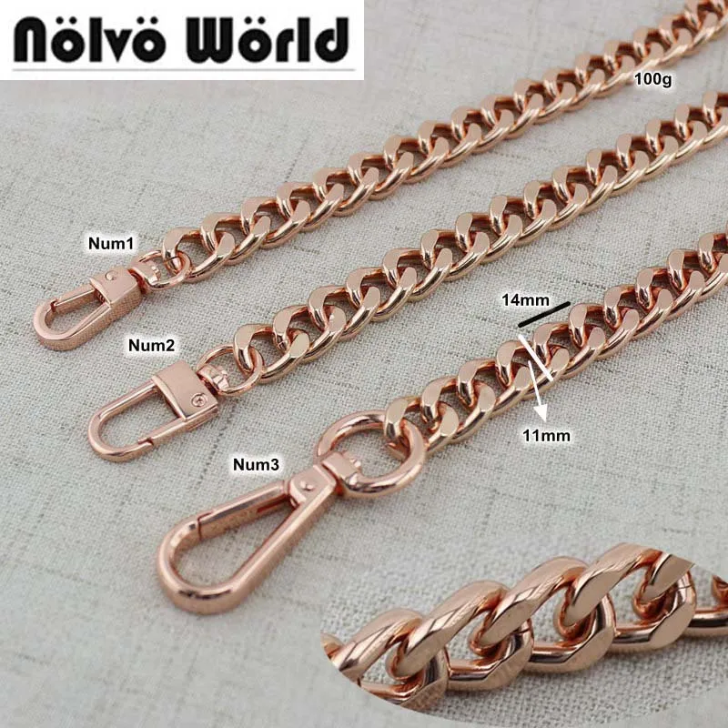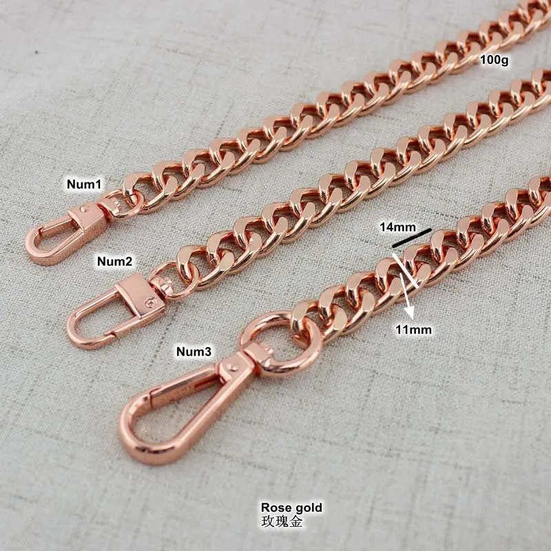 1 шт., 11 мм, широкая Снаряженная Цепь, анодированный светильник, вес, алюминий, розовое золото, с поворотными крючками, для сумок, длинный ремешок, цепь, новые цепи