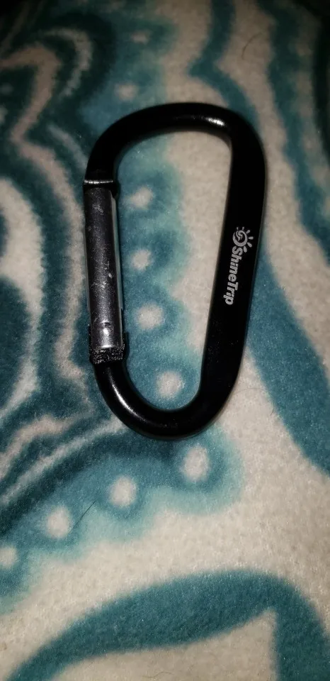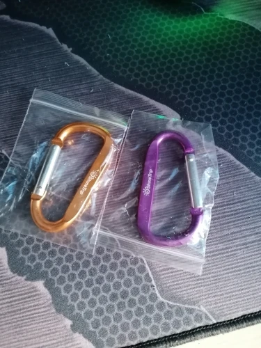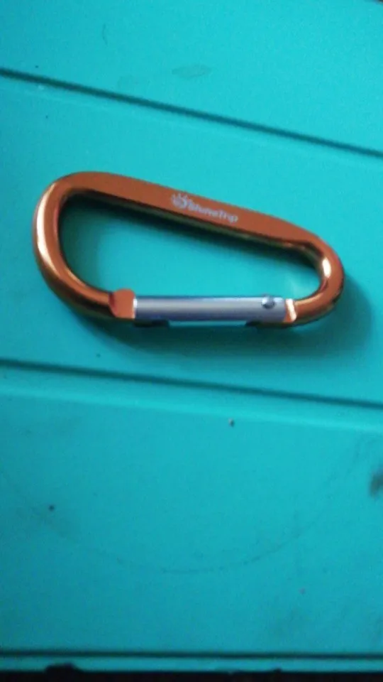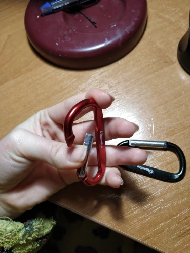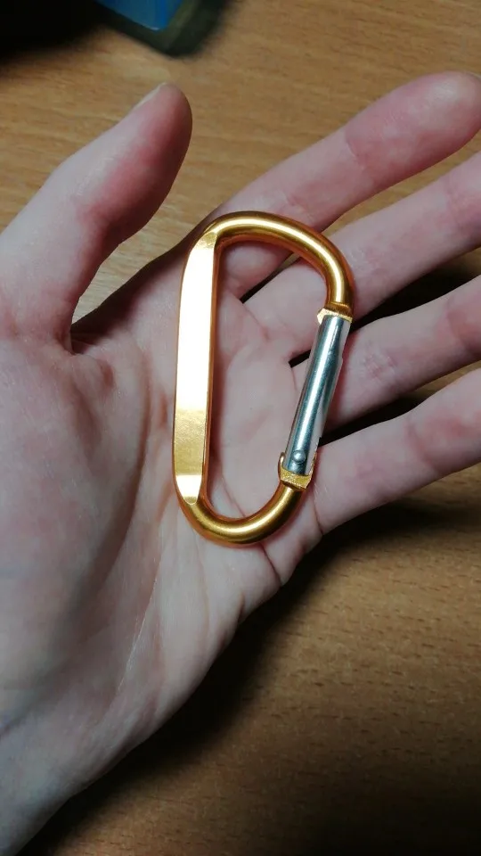 Простой алюминиевый карабин с простой, не самой надёжной защёлкой - пока новая - держит. Как только расшатается и вывернится - вылетит пружинка. Поэтому периодически подстукивайте её молотком. Очень понравилось что они крупные - отлично надеваются на ремень брюк. Дёшево и сердито, да ещё и пять штук в наборе. Супер - я доволен на все 100!