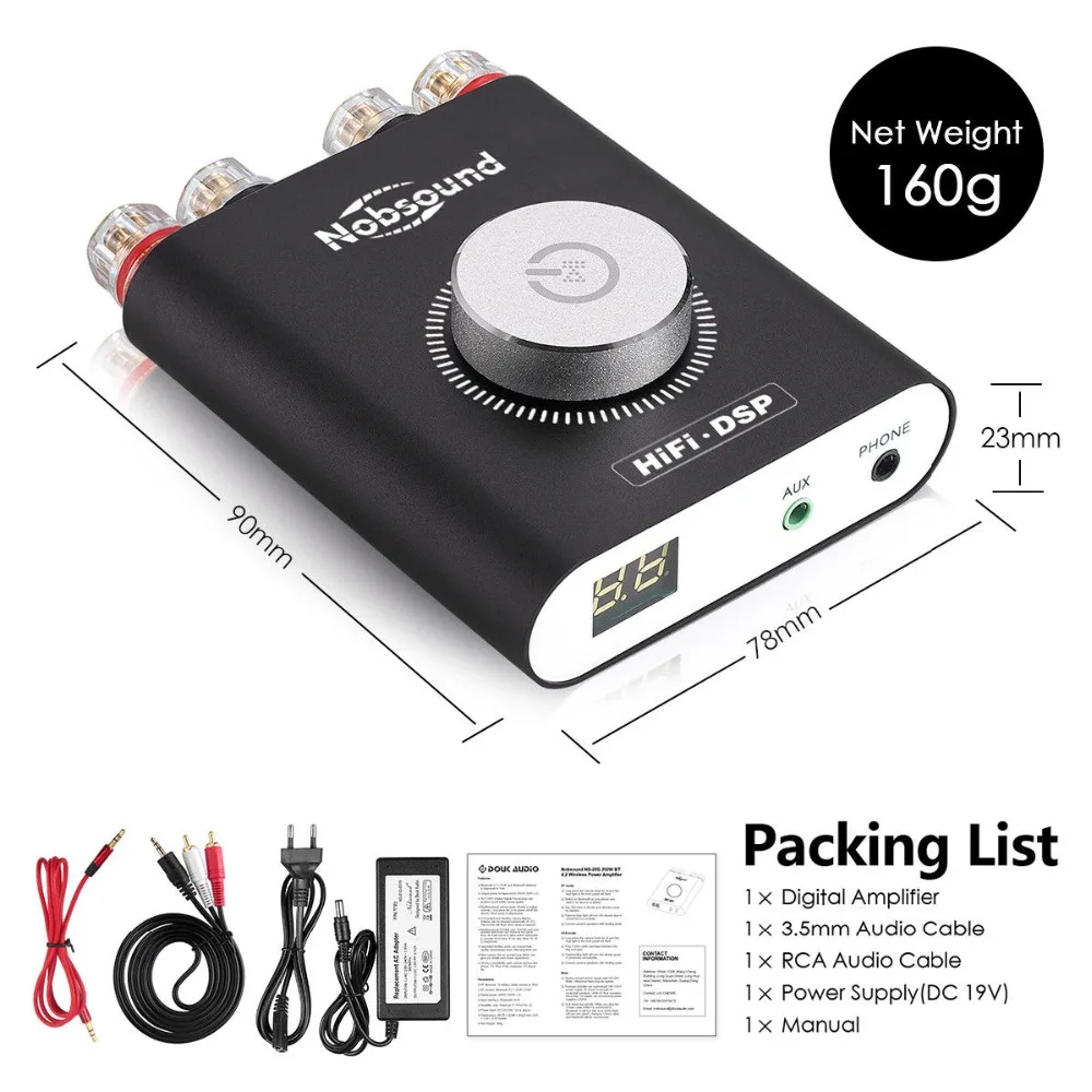 Цифровой усилитель мощности Nobsound, Hi-Fi NS-20G Mini Bluetooth 5,0 TPA3116 Hi-Fi DSP стерео усилитель для наушников 100 Вт + 100 Вт с адаптером