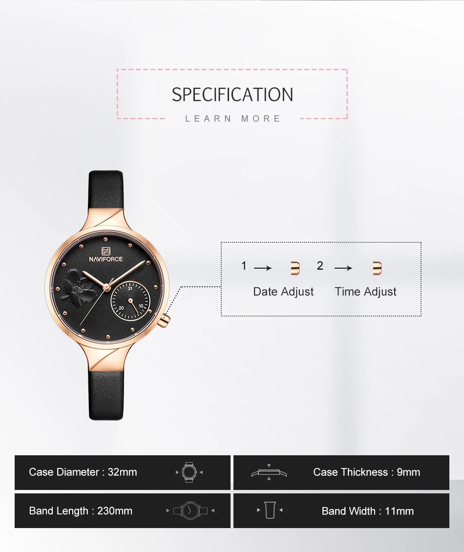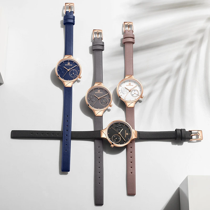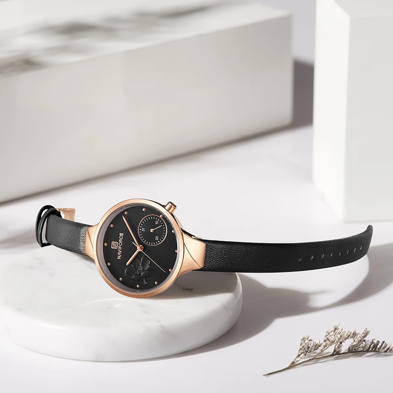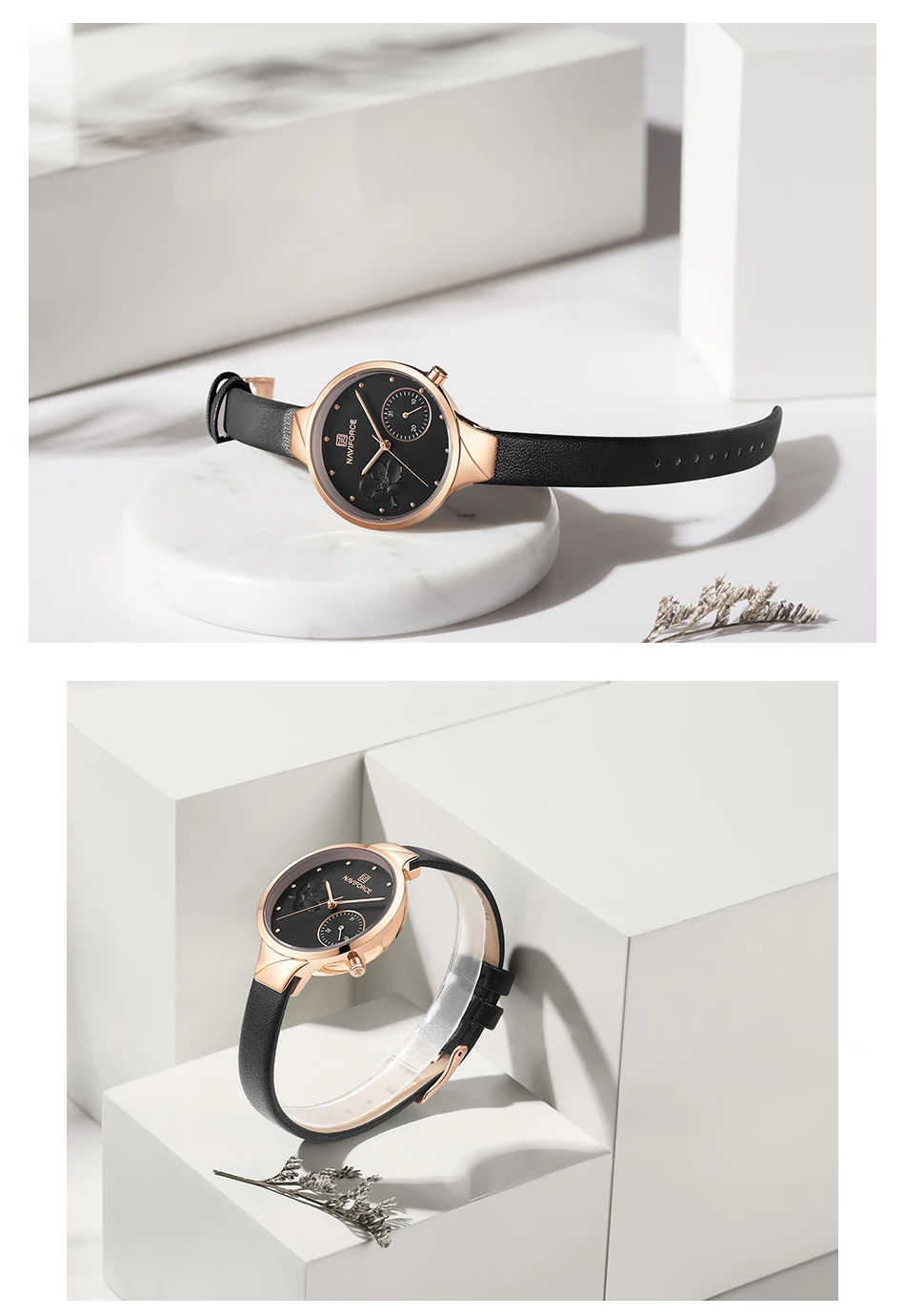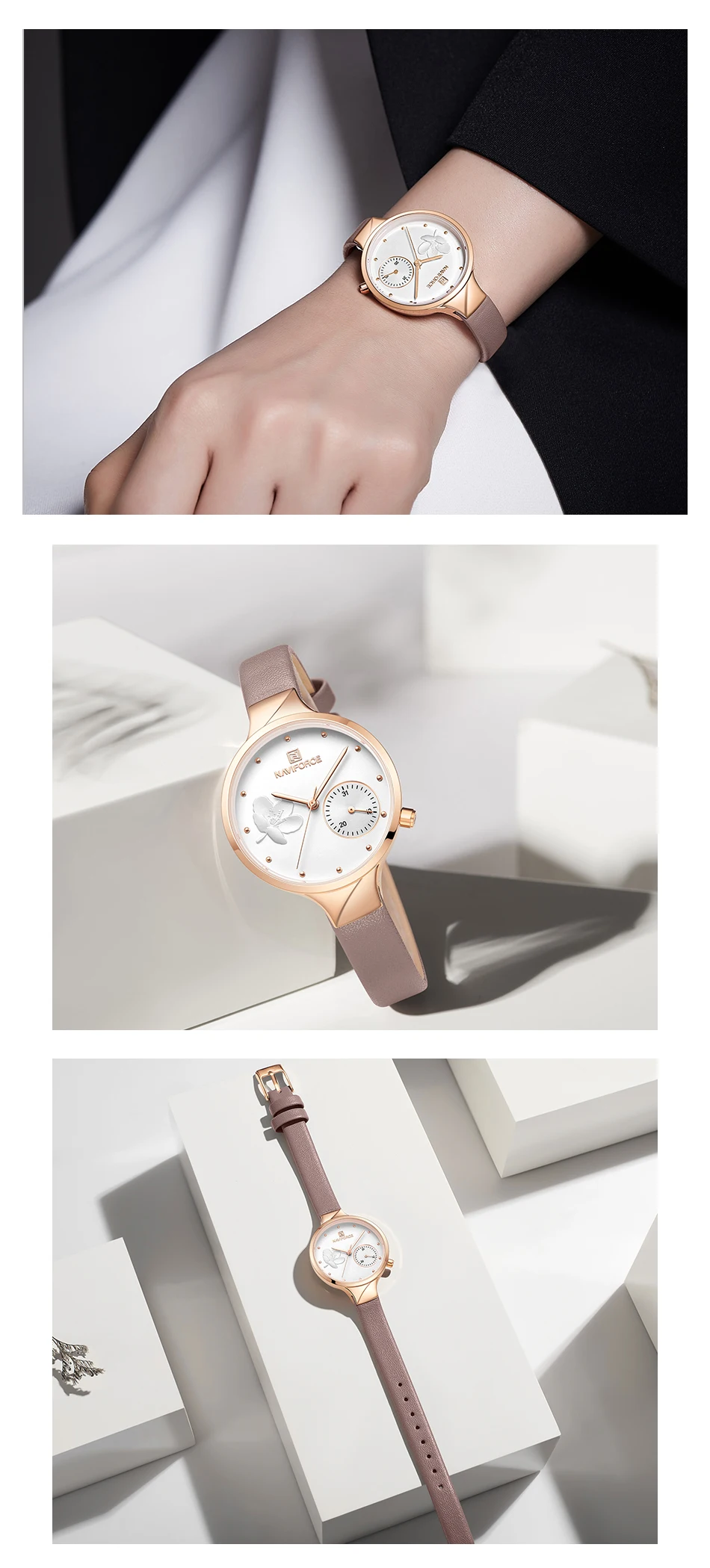 NAVIFORCE брендовые роскошные кожаные модные часы для женщин креативный розовый циферблат повседневные Элегантные Женские кварцевые наручные часы Relogio Feminino