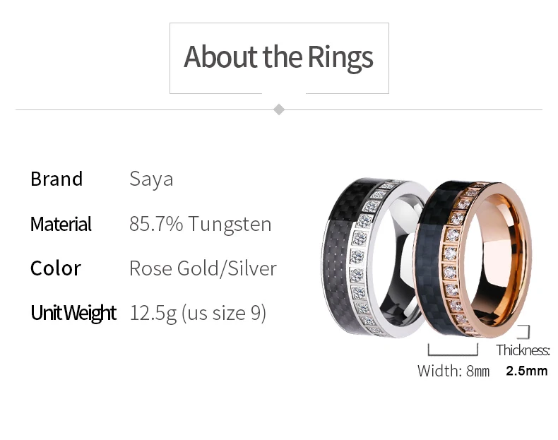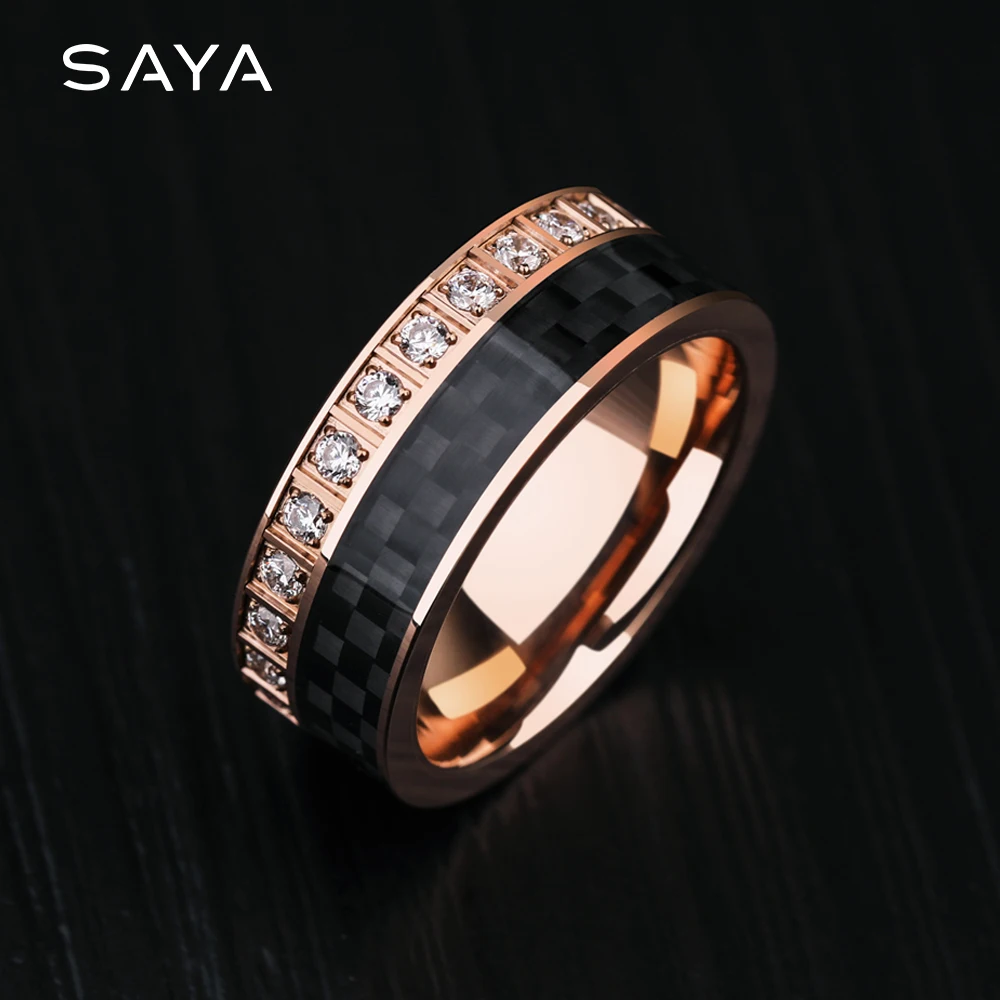 Кольцо для мужчин, женщин, мужчин, вольфрамовые кольца для помолвки, t, инкрустация из черного углеродного волокна и блестящие CZ камни, по индивидуальному заказу