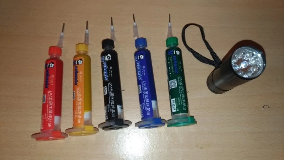 Маска для пайки с УФ-отверждением, 5 шт., 5 цветов + 5 игл + маска для УФ-лампы 10 куб. См для печатной платы, защитная паяльная паста, флюс для масла