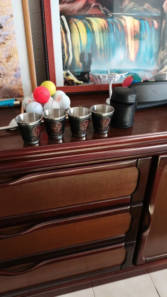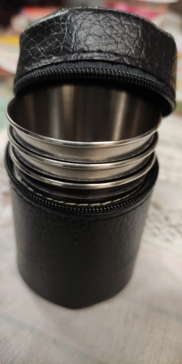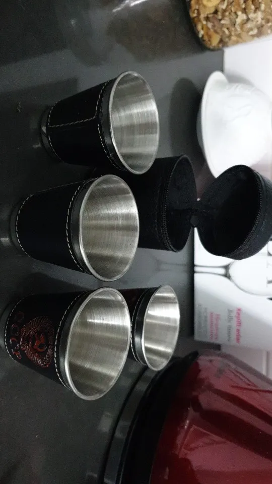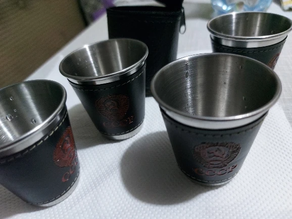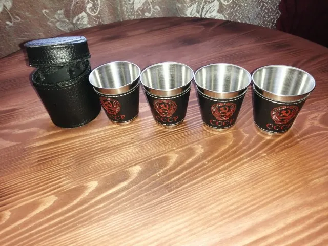 Товар дошел достаточно быстро, сам чехольчик на троечку, склеен из кусочков кожзама, а стопки хорошие, мне понравились, на природе лишь бы было куда налить...