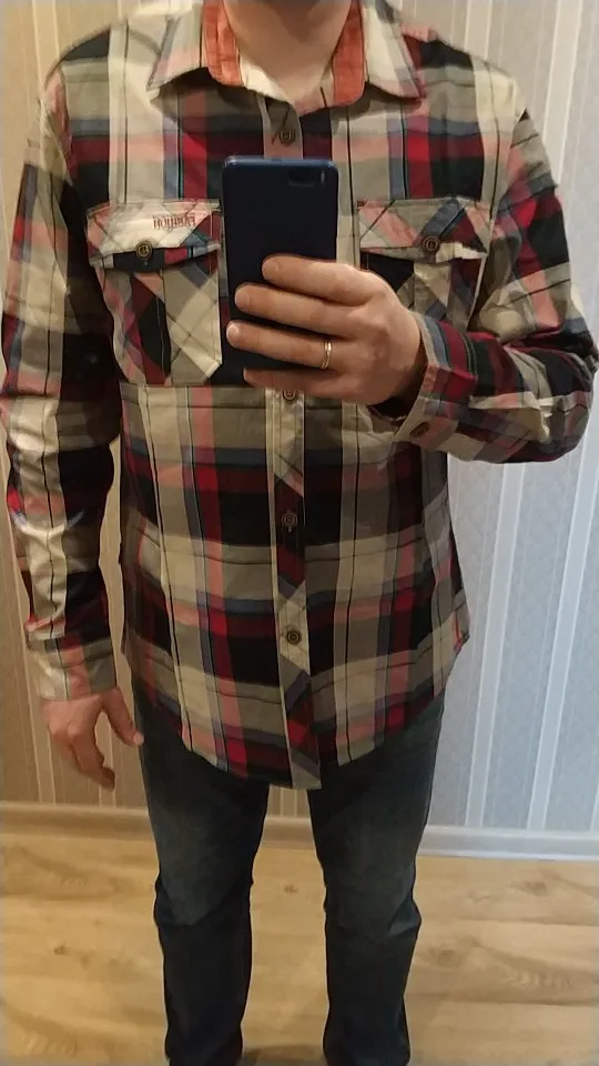Рубашка шла ровно месяц. Почтальон принёс прямо домой. С размером угадал, как будто на меня шили. Брал 4XL. Мой рост 180, вес около 100. Хорошая толстая ткань. С изнанки что-то вроде короткого меха. Пошита чуть чуть небрежно. Строчки вроде ровные, но в некоторых местах плохо закреплены. Кое-где торчат нитки от ткани. Но это не критично. Товар того стоит. Во всяком случае в наших магазинах таких рубашек нет. Спасибо продавцу!