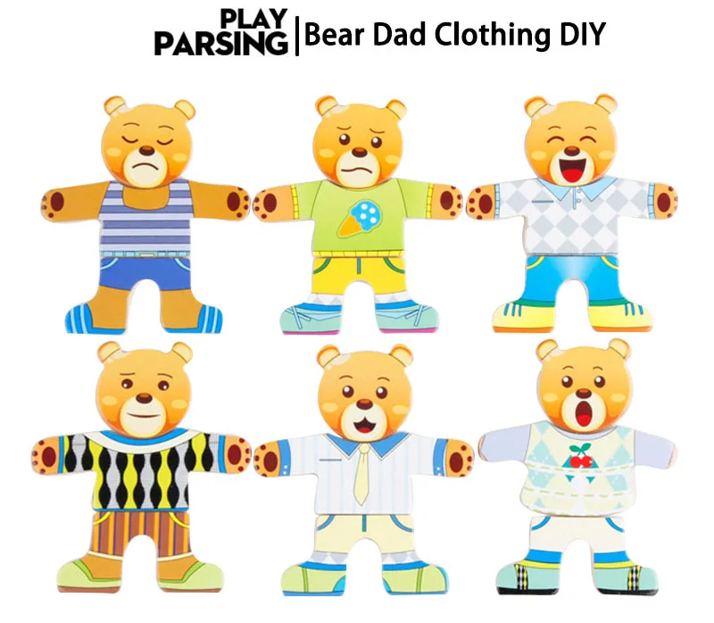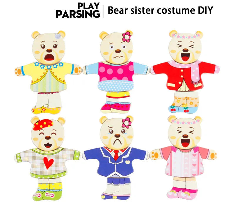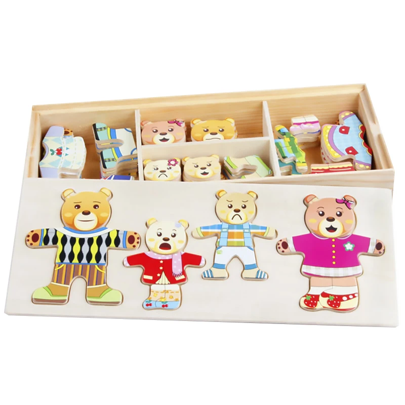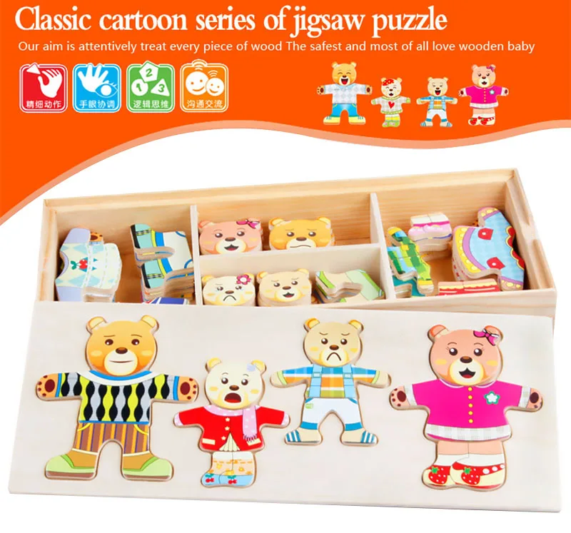 Мультяшная деревянная игрушка, одежда для смены животных, Обучающие игрушки-пазлы, платье, изменяющая форму, подходящая головоломка для детей