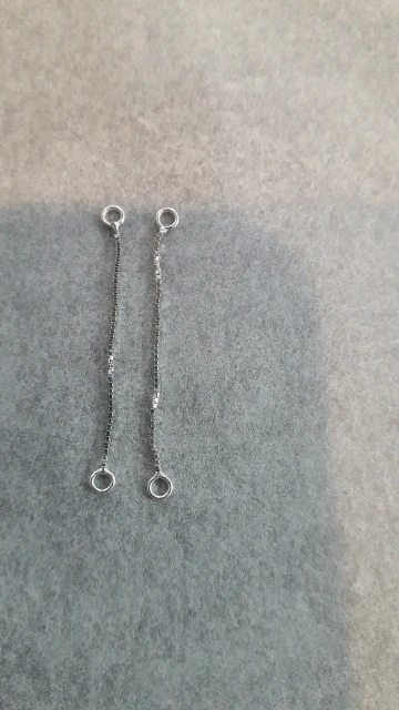Они красивые, но кольца на концах очень тусклые и Серебристые. Нет блеска для них. На самом деле он очень матовый. Цепочка блестящая и красивая. Просто желаю, чтобы они сочетались с блеском весь путь. Также не яркое серебро. Больше как родиевое покрытие