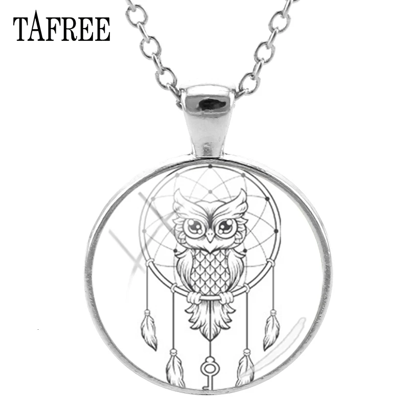 Подвески в виде Ловца снов и Совы TAFREE, ожерелья, новый черно-белый художественный узор, стеклянный кабошон, Купольные ювелирные изделия ручной работы DH54
