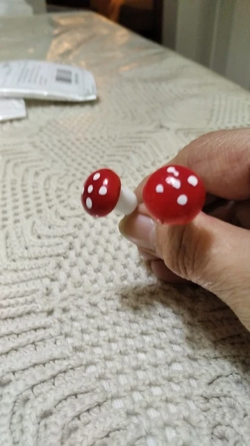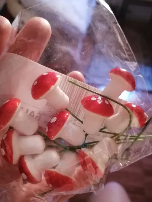 Я заказал 10 единиц (10 комплектов), но прибыл только 9 единиц. По этой причине я ставлю только 3 звезды. Некоторые грибы немного выцветают в белый горошек. Качество обычное. Я понимаю, что это очень дешевый продукт, вот почему он есть. В противном случае, мне они нравятся. Я надел их на свои растения.