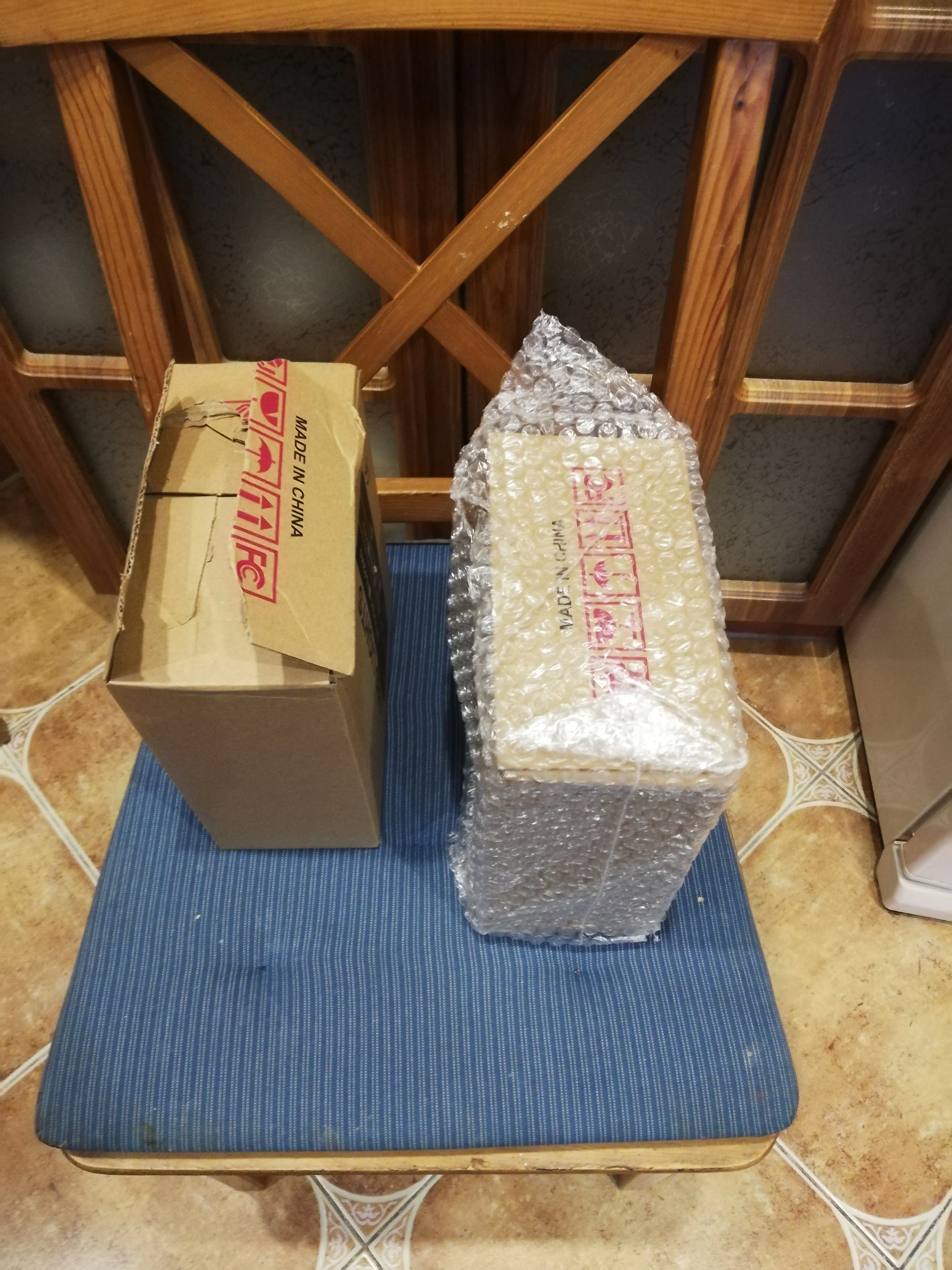 Посылка пришла в Москву через два месяца. Заказывал два комплекта. Оба комплекта были упакованы в один пластиковый пакет. Пакет обмотан скотчем, как будь-то вскрывался. Завесил посылку - вес совпал с заявленному. Вскрыл пакет. В пакете было две коробки, одна явно вскрывалась. (см. фото) "Внутренности" оказались целыми и в полном комплекте. Все работает корректно.