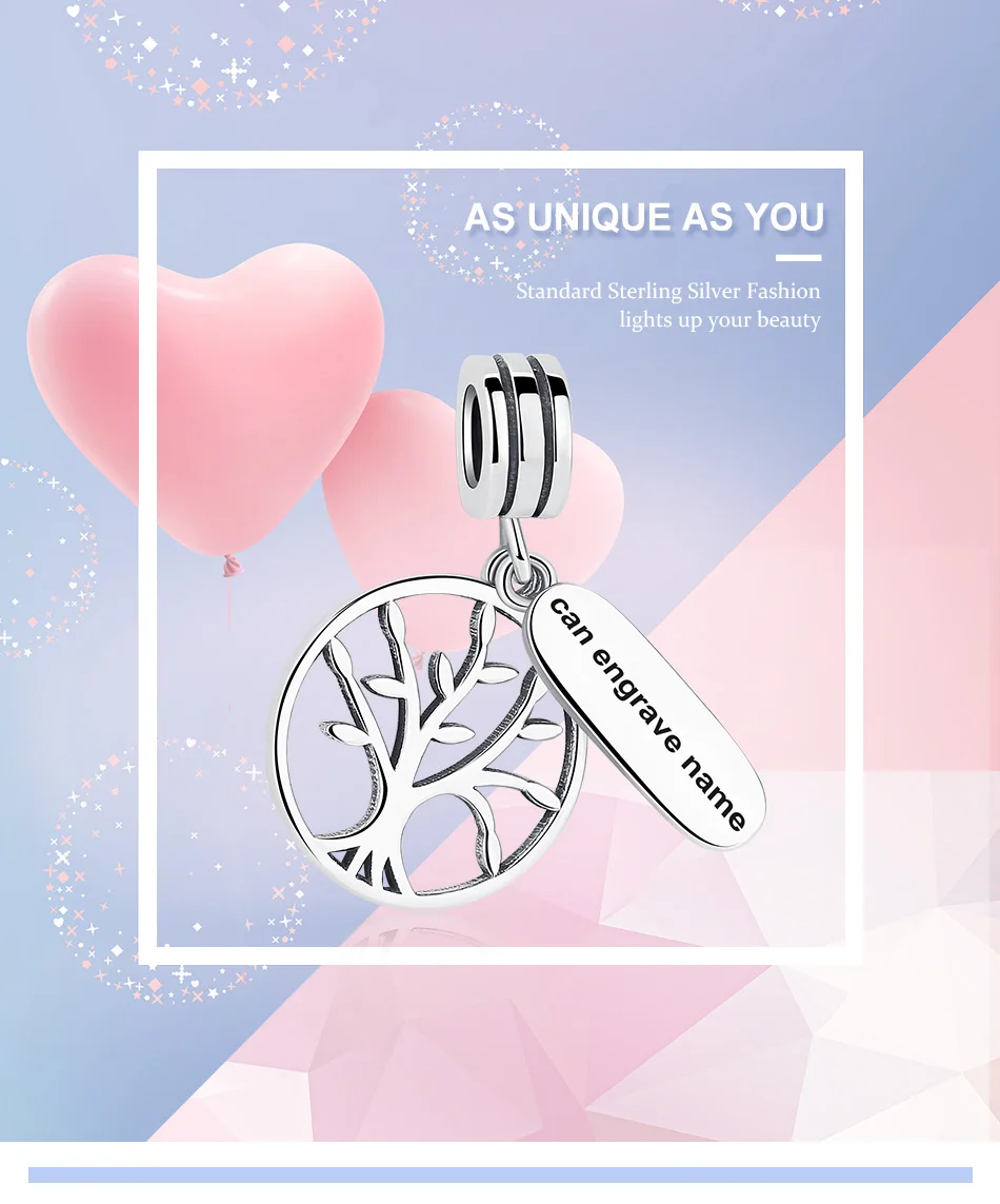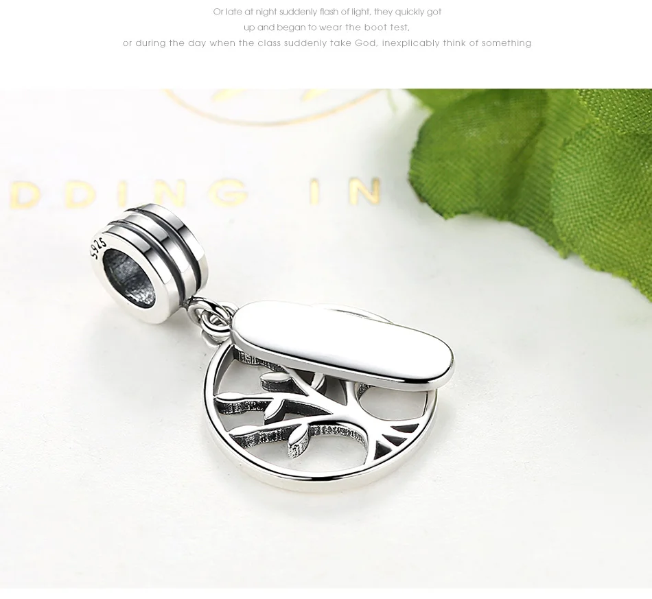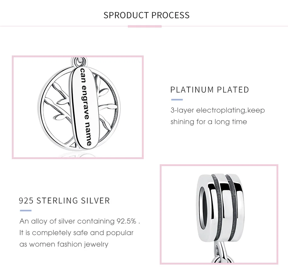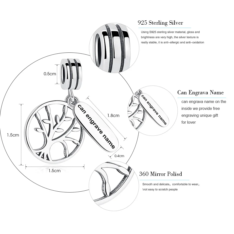 ELESHE Выгравируйте имя можно украсить ювелирными изделиями 925 пробы Щепка Семья Древо жизни Круглые бусины для браслетов, оригинал, ювелирное изделие