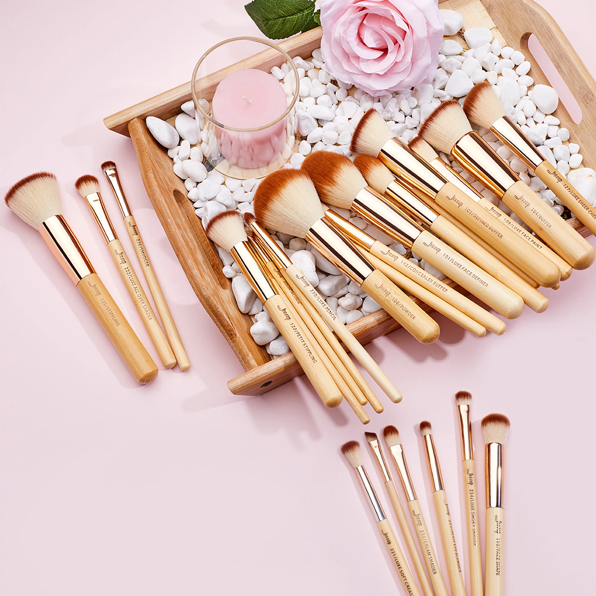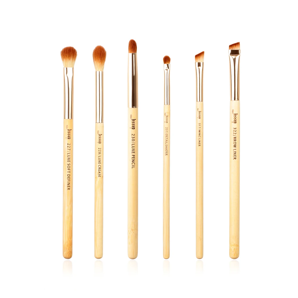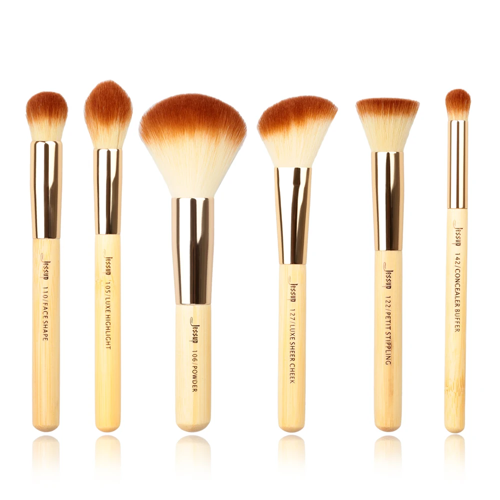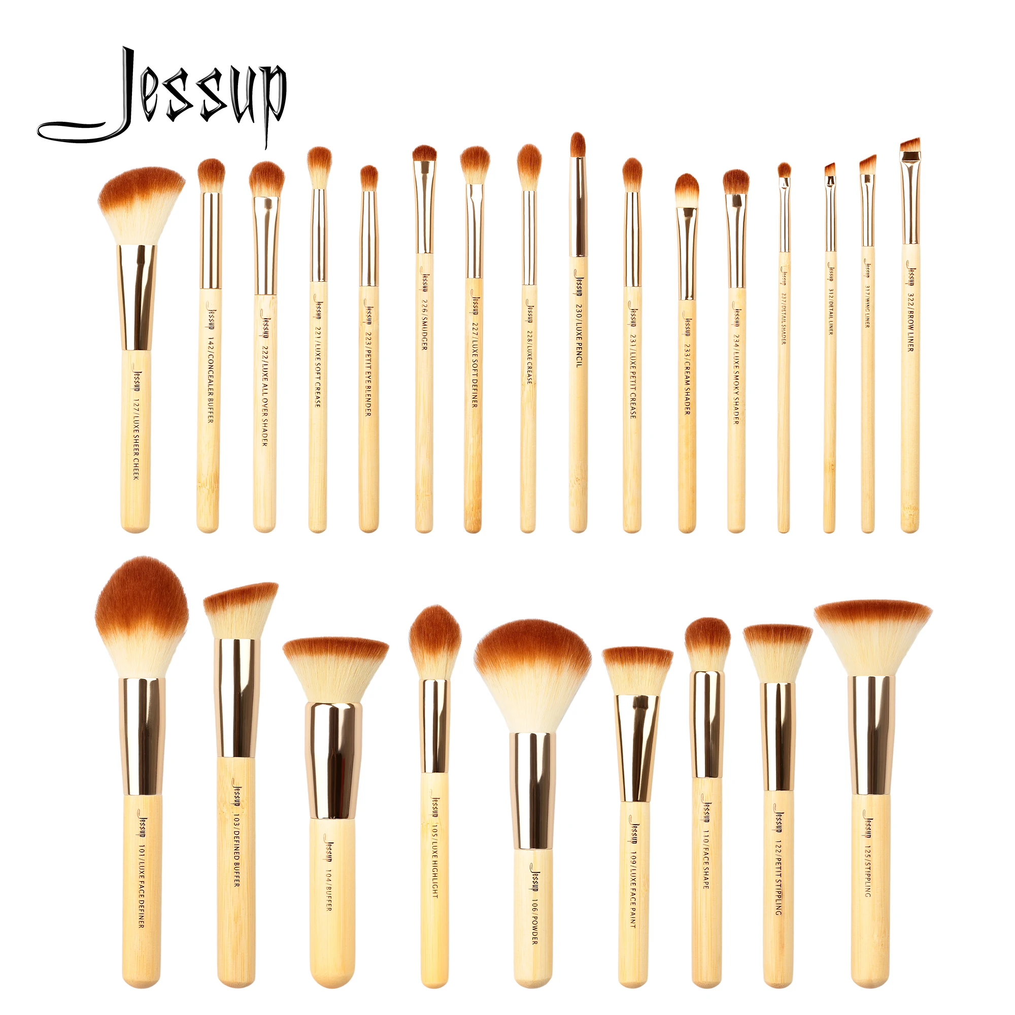 Jessup кисти для макияжа набор Кисть для нанесения основы под макияж пудра карандаш для век теней для макияжа, косметический инструмент 6-25 шт из бамбука