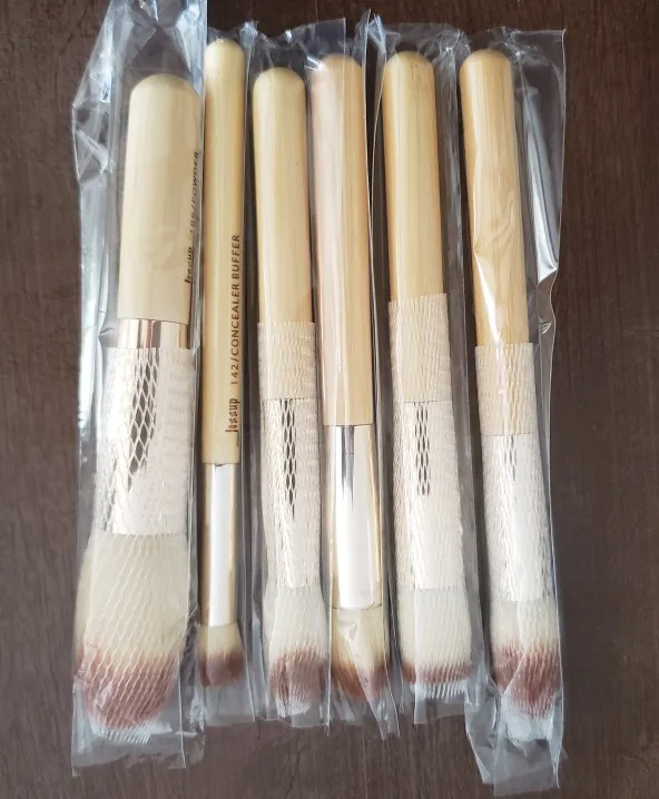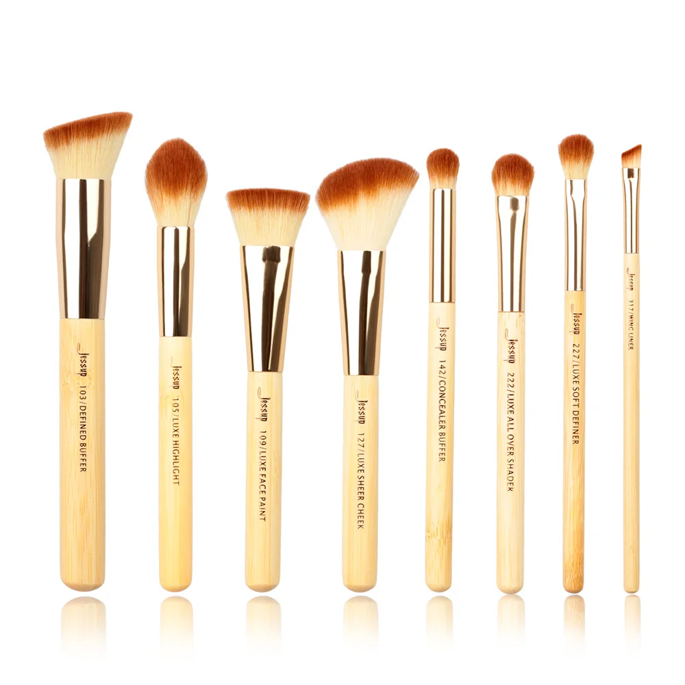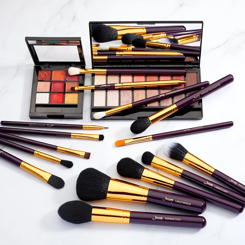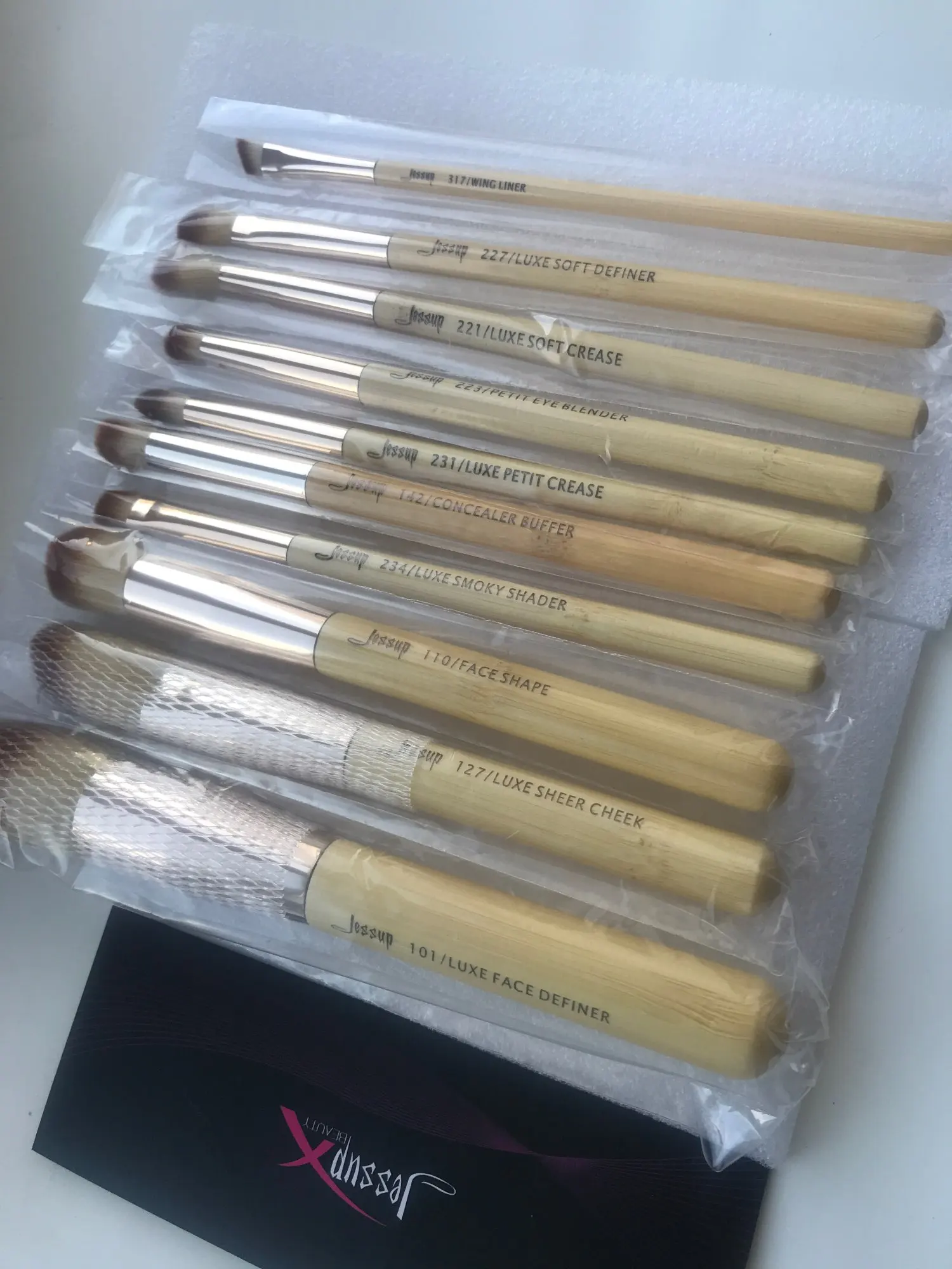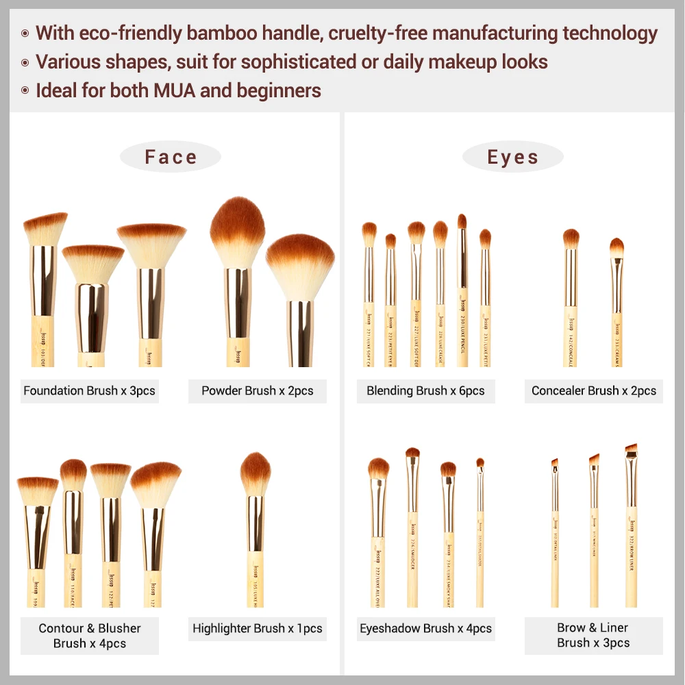 Jessup кисти для макияжа набор Кисть для нанесения основы под макияж пудра карандаш для век теней для макияжа, косметический инструмент 6-25 шт из бамбука