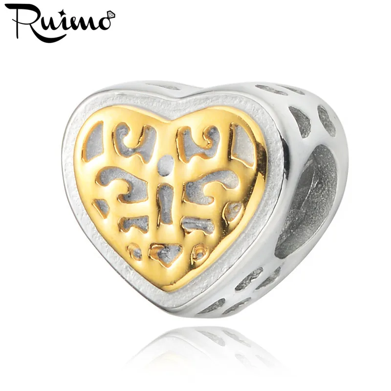 Бусины RUIMO из нержавеющей стали 316L с золотым покрытием в полоску и сердцем, Европейские Бусины с большим отверстием 5,5 мм для изготовления ювелирных изделий своими руками браслетов