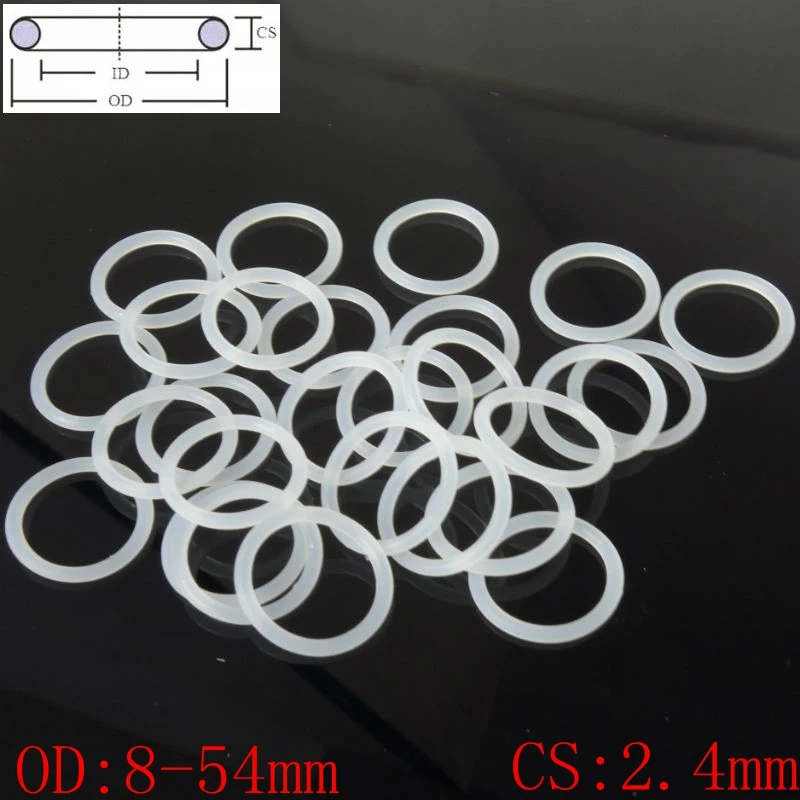 Белое пищевое Силиконовое резиновое уплотнительное кольцо, шайба, сечение 2,4 мм OD 8-54 мм