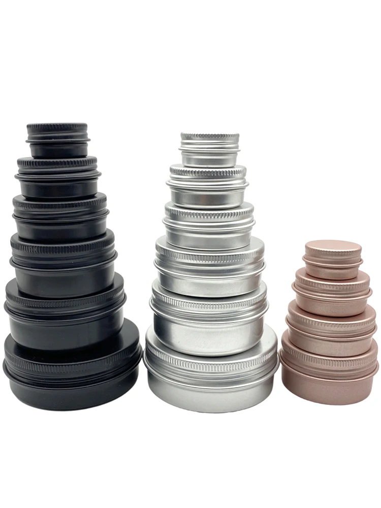 Эти круглые контейнеры для банок поставляются с винтовыми крышками и изготовлены из алюминия.