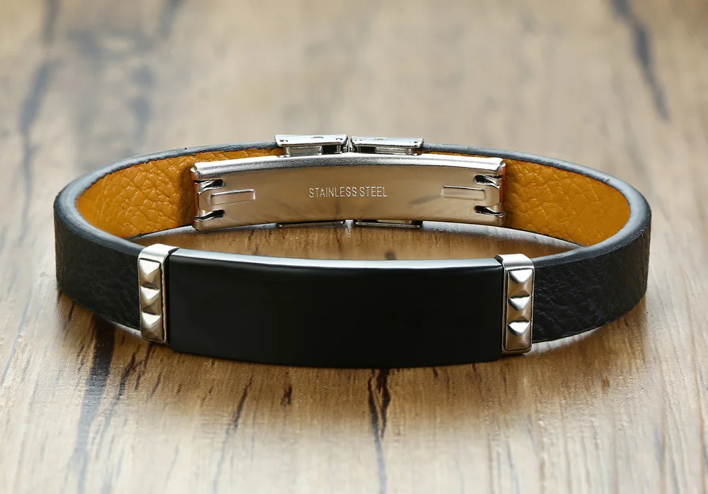 Персонализированный черный браслет из натуральной кожи с бесплатной гравировкой, медицинская бирка с оповещением о диабете, экстренная помощь
