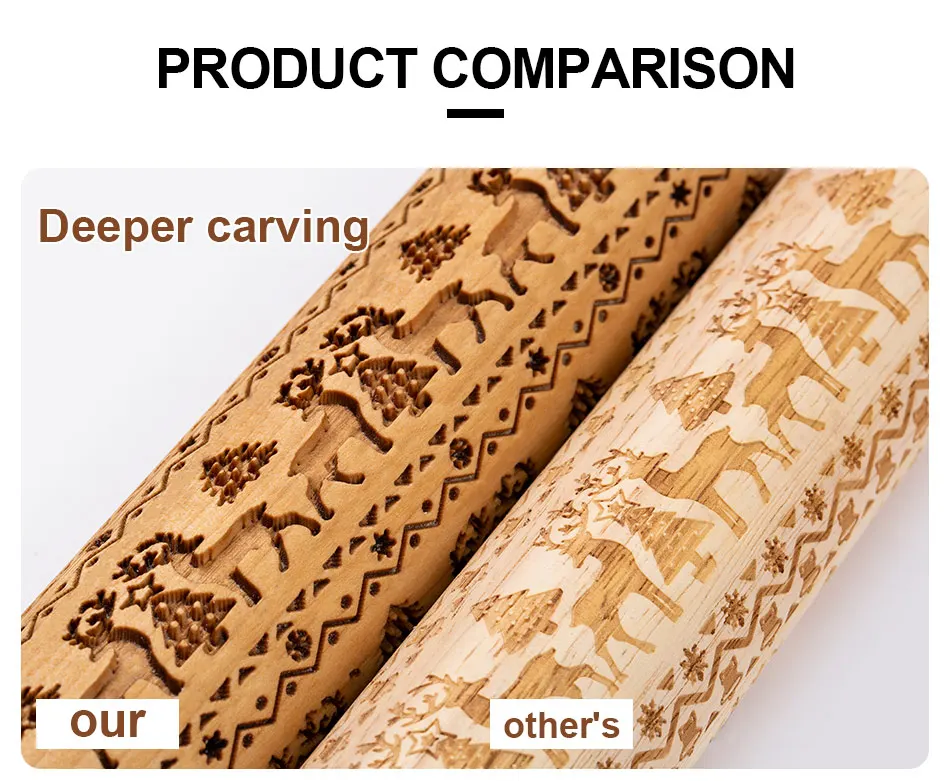 Скалка для рождественского тиснения, 35 см, для выпечки печенья, фо...