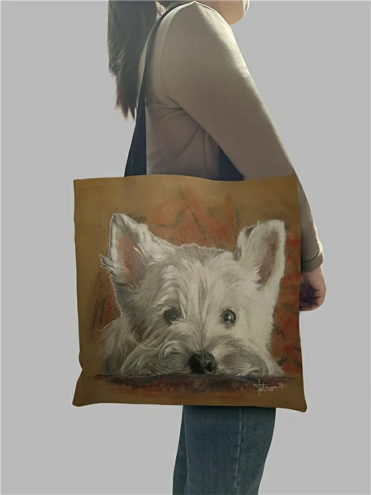 Уникальный дизайн Westie Собака Картина квадратная сумка для женщин шоппер сумки большой емкости эко лен сумки дропшиппинг