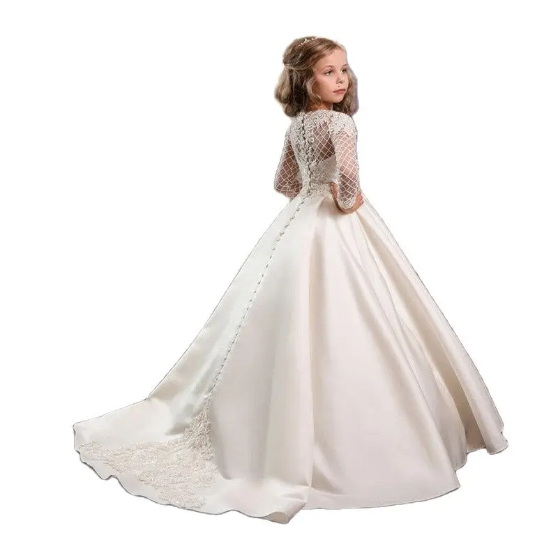 Новое платье с цветочным узором для девочек с накидкой Anxia, настоящее праздничное платье для причастия детское платье для свадьбы