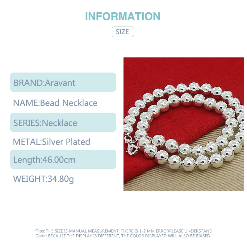 925 серебро 10 мм цепочка из бисера ожерелье для женщин модные ювелирные изделия