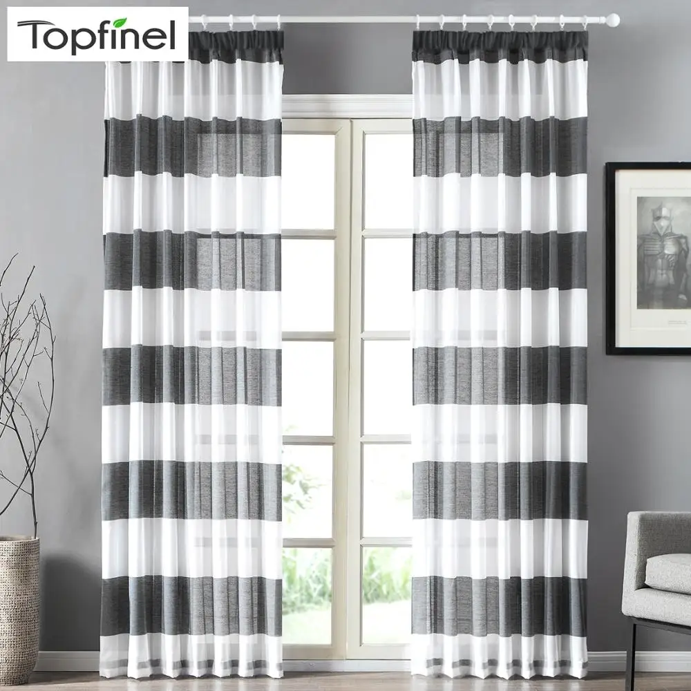 Полупрозрачные шторы Topfinel, темно-серые шторы из вуали для спальни, кухни, гостиной, в полоску, домашний декоративный тюль на окна, 5 цветов