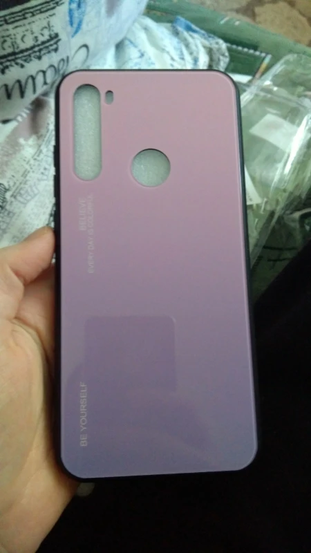 Прекрасный и очень красивый чехол! Заказываю во второй раз, до этого был салатовый. Это действительно стекло, а не пластмасса. С цветом сенсора отпечатка совпал, камера в чехле утоплена. Удобный, кнопки нажимаются легко. Продавец отправил на следующий день. До спб дошёл за 13-14 дней. Рекомендую!