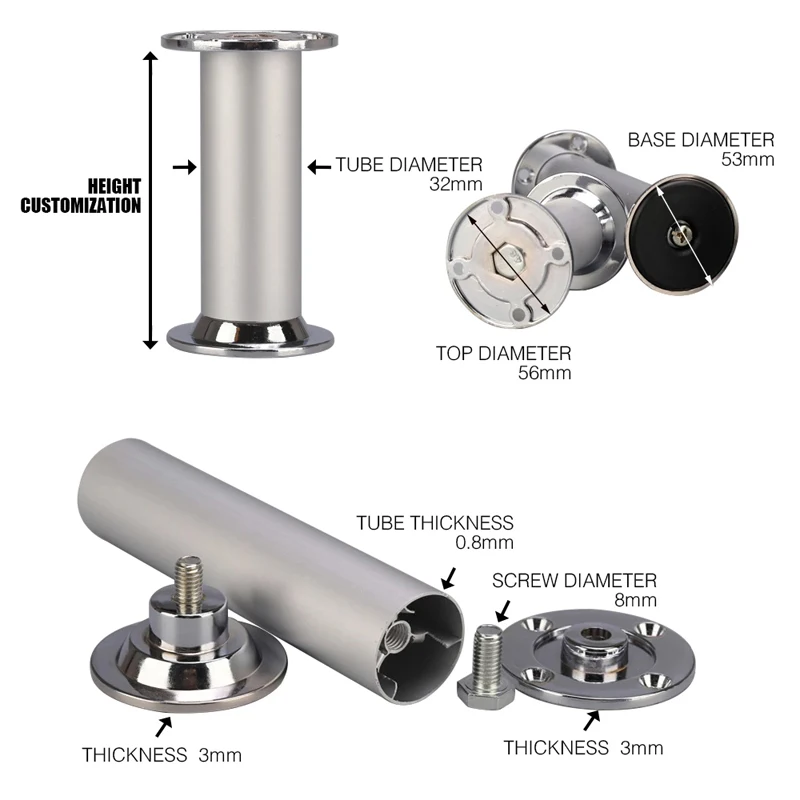 Высококачественные ножки для мебели из алюминиевого сплава, регулируемые по высоте, удобные и практичные.