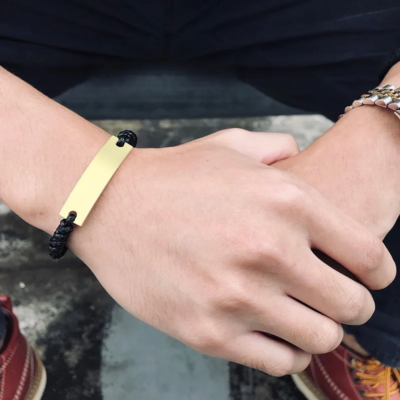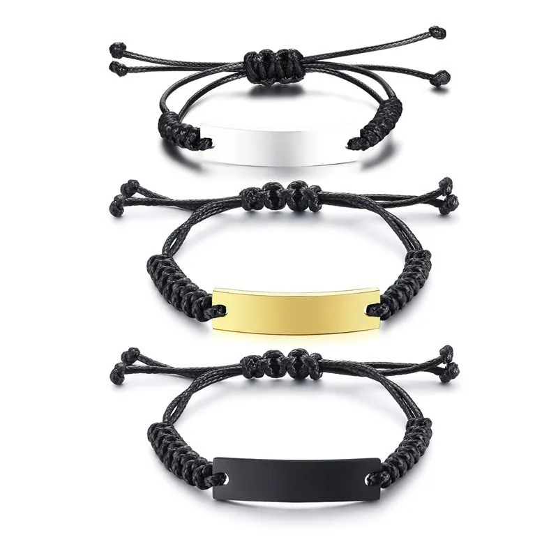 Браслет унисекс из нержавеющей стали с регулируемым шнуром, плетеный браслет с индивидуальным именем и логотипом для женщин и мужчин, подарки, ювелирные изделия