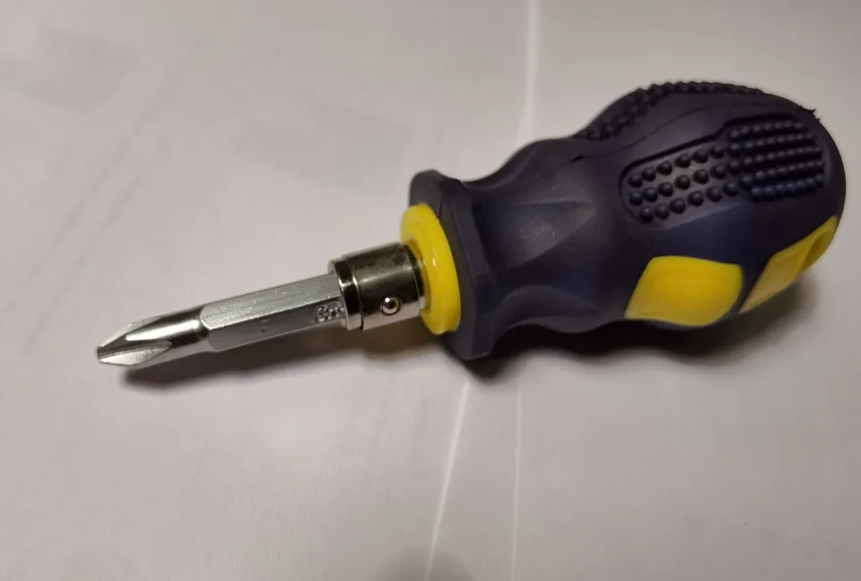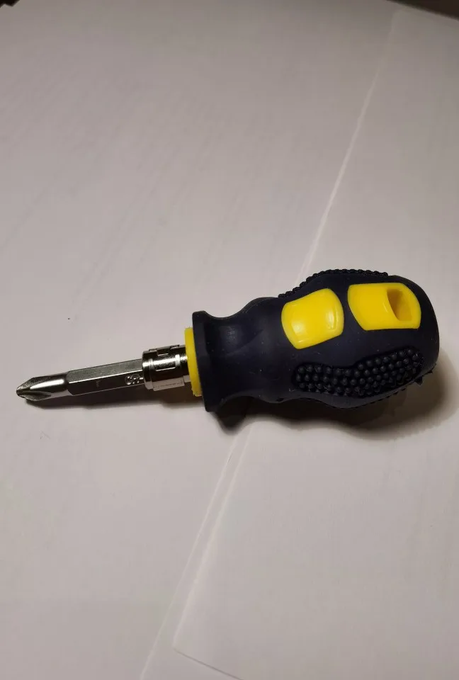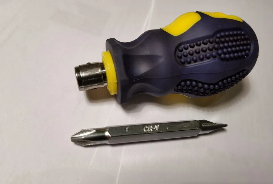 Отличная отвёртка на случай, когда под рукой нет полноценного набора отвёрток или для работы в ограниченном пространстве. Комплектная бита сидит плотно. Можно использовать другие биты размера 6.3 мм. Качество материалов рукоятки и комплектной биты сомнений не вызывает. Эту отвёртку можно использовать не только для ремонта мелкой бытовой техники, но и для более высоких нагрузок, как то закручивание саморезов в дерево и дюбеля.