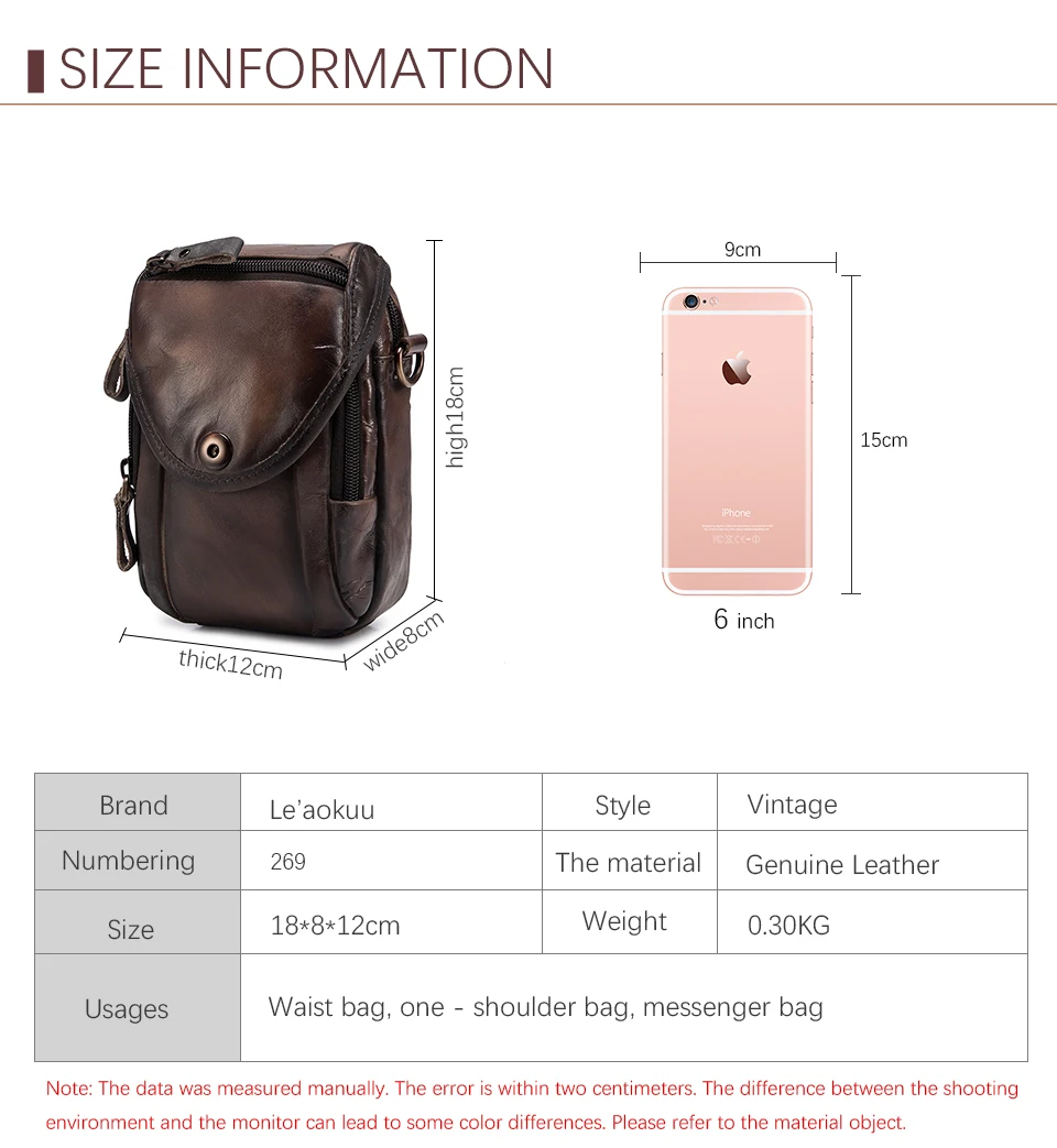 Модная оригинальная кожаная многофункциональная сумка на пояс с крючком, сумка через плечо, чехол для сигарет, 6-дюймовая сумка для телефона, поясная сумка, 269-lb