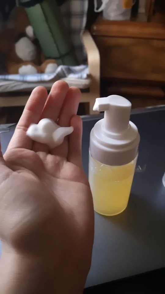 досталась с купонами за 20 рублей. вроде качество нормальное, пении хорошо, но когда средства остаётся мало, начинает просто жидкость выливать, не вспенивая. и в лежачем положении протекает, так что надёжен не на 100%