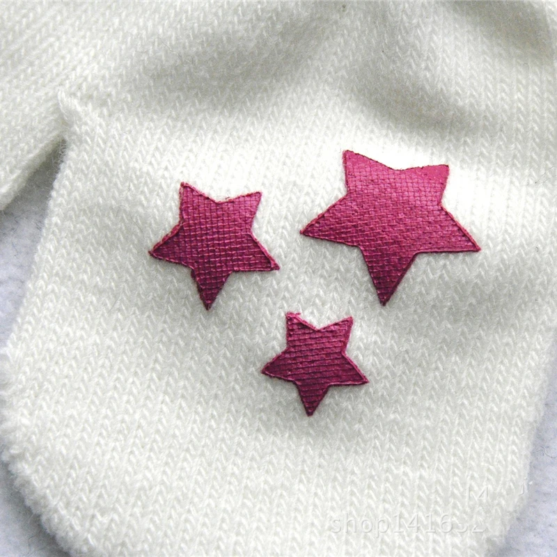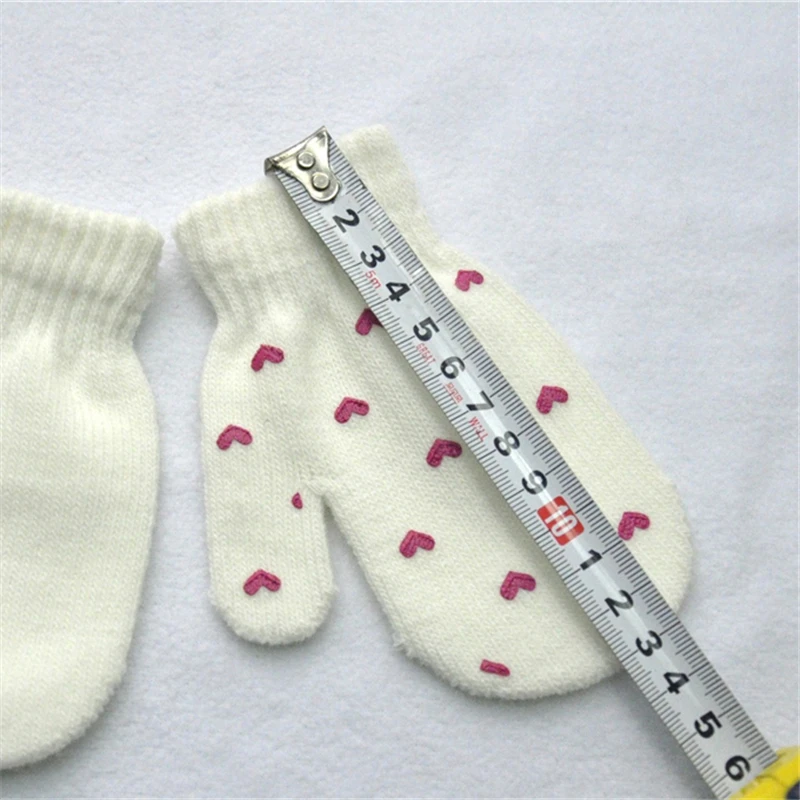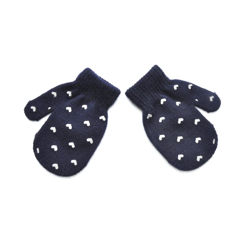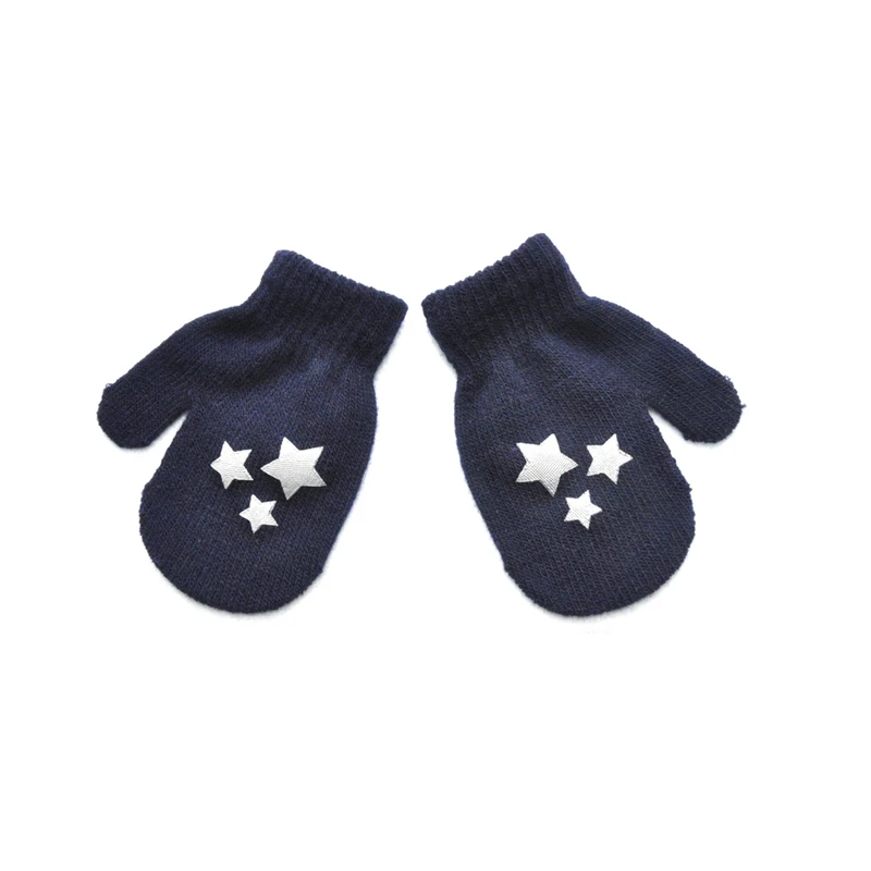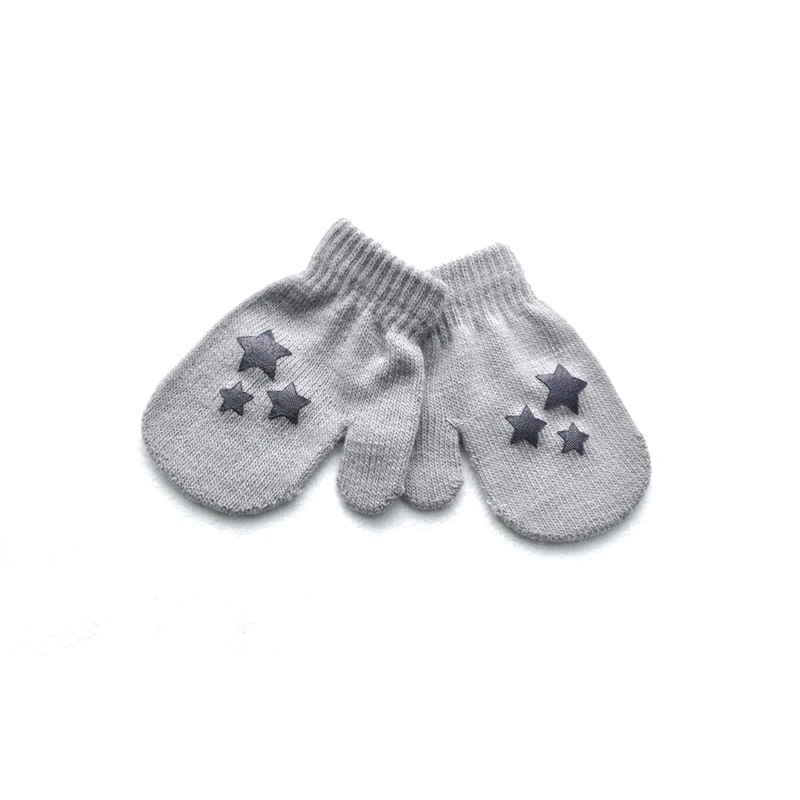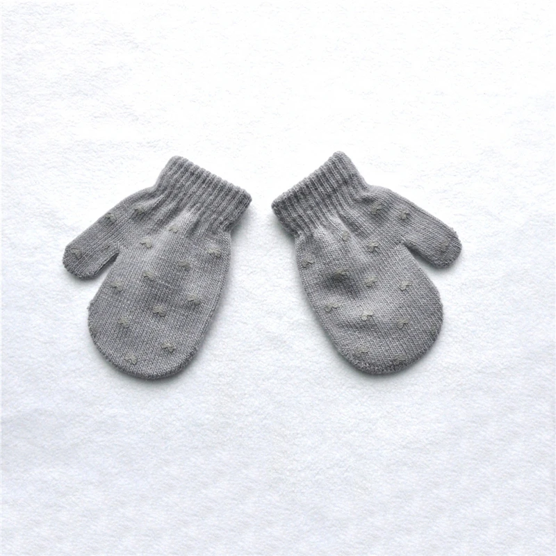 Милые зимние перчатки для мальчиков и девочек, теплые вязаные перчатки для младенцев, детские перчатки с пальцами, однотонные перчатки с принтом звезд и сердец для детей 0-12 месяцев