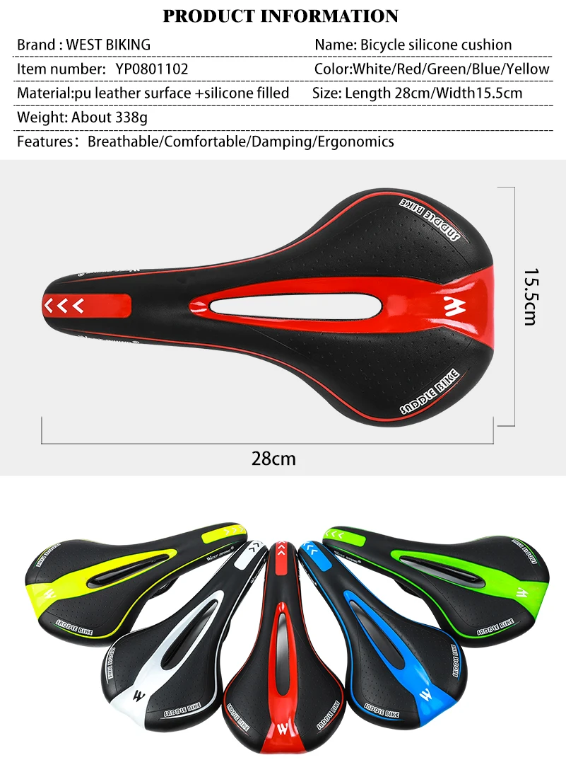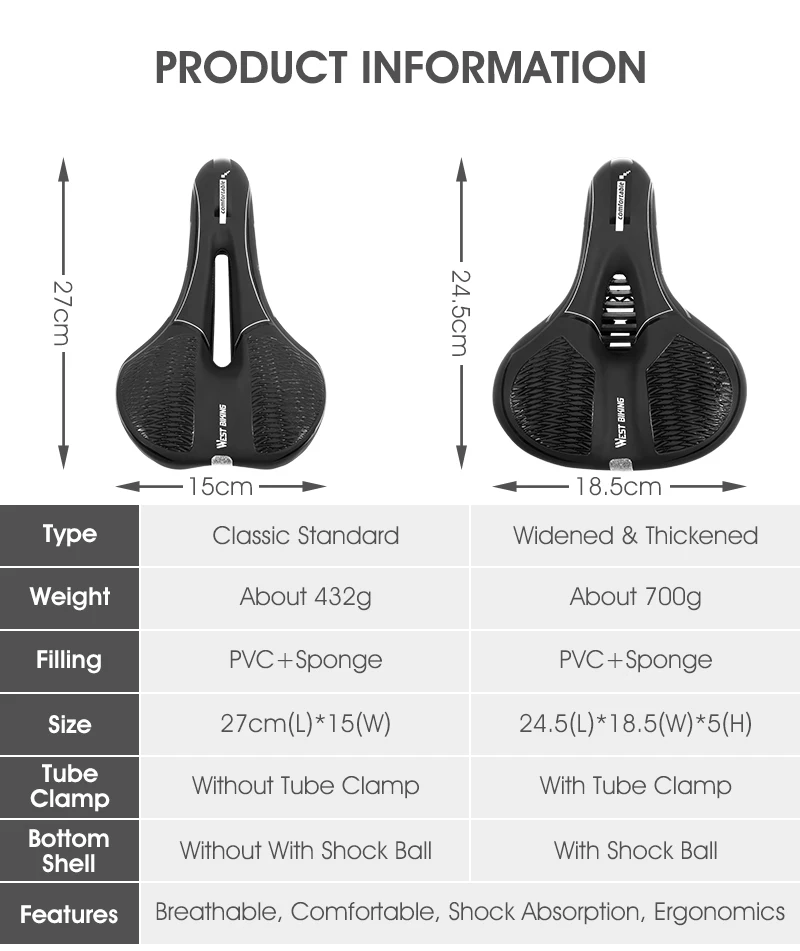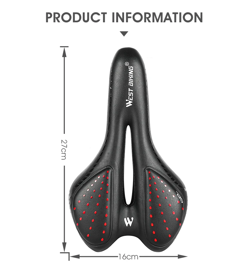 Велосипедное седло WEST BIKING, мягкое ажурное удобное, противоудар...