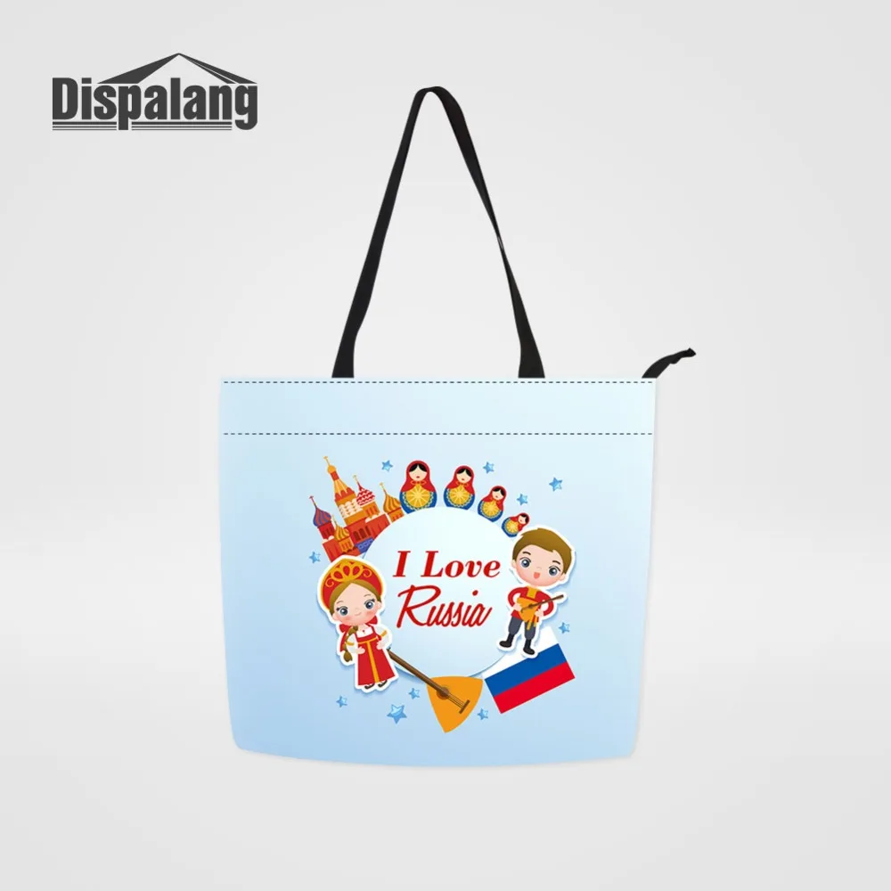 Dispalang, милые русские куклы с принтом, мультяшная сумка для покупок, парусиновая многоразовая складная сумка на плечо, продуктовая сумка, женские сумки-тоут