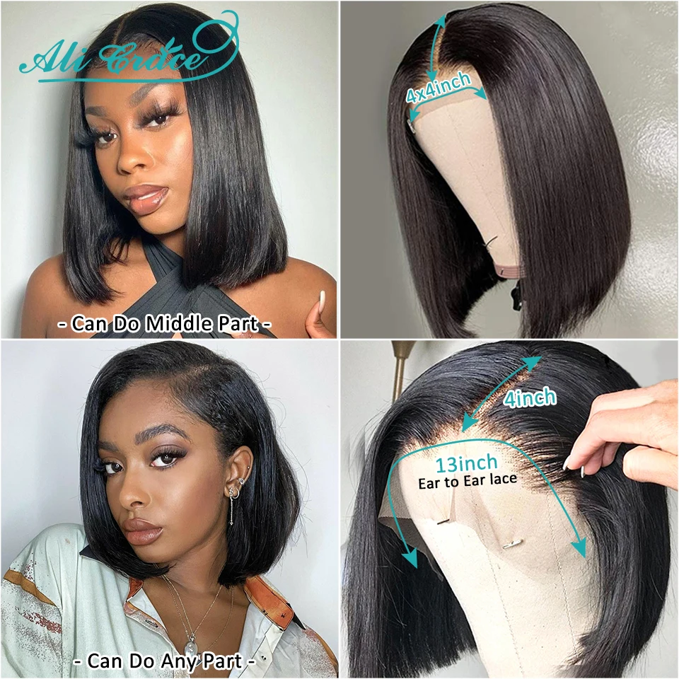 Парик Боб Ali Grace, парики из натуральных волос на сетке, бразильский короткий парик Боб, предварительно выщипанные натуральные цвета, парики из натуральных волос на сетке